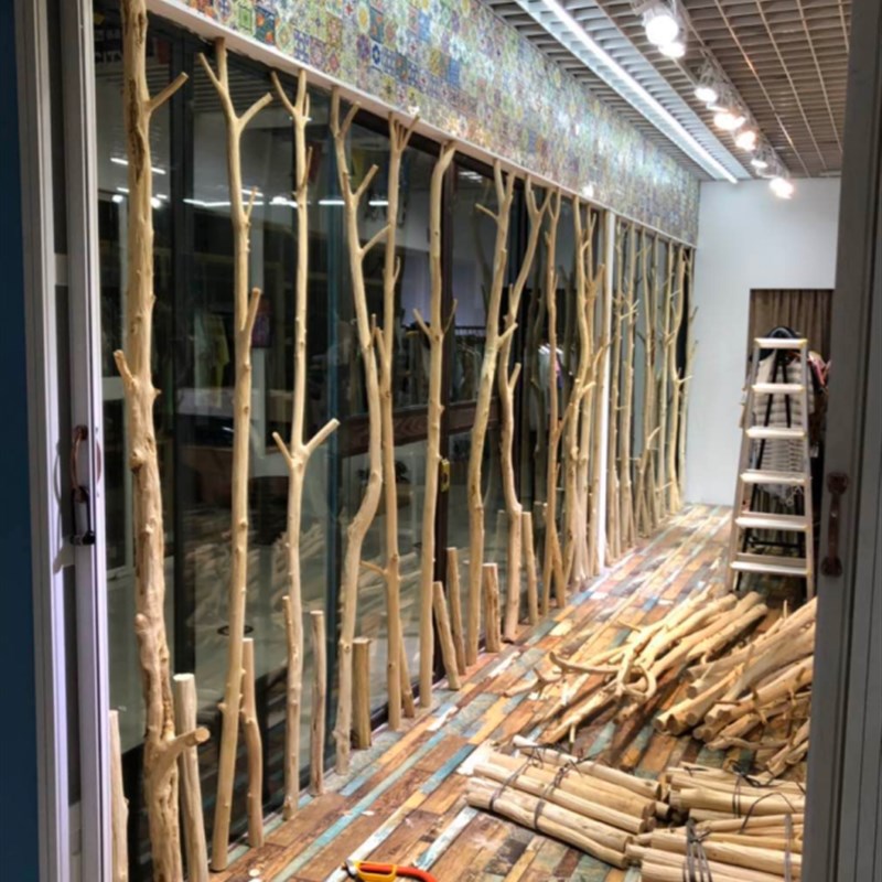 干树枝装饰天然枯木隔断干客厅玄关隔断干枝吊灯壁挂干树杈白树枝