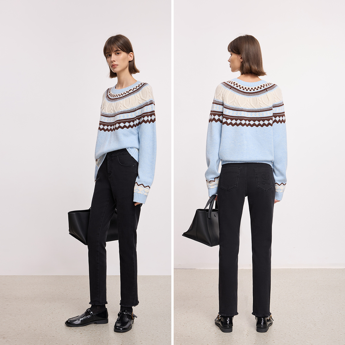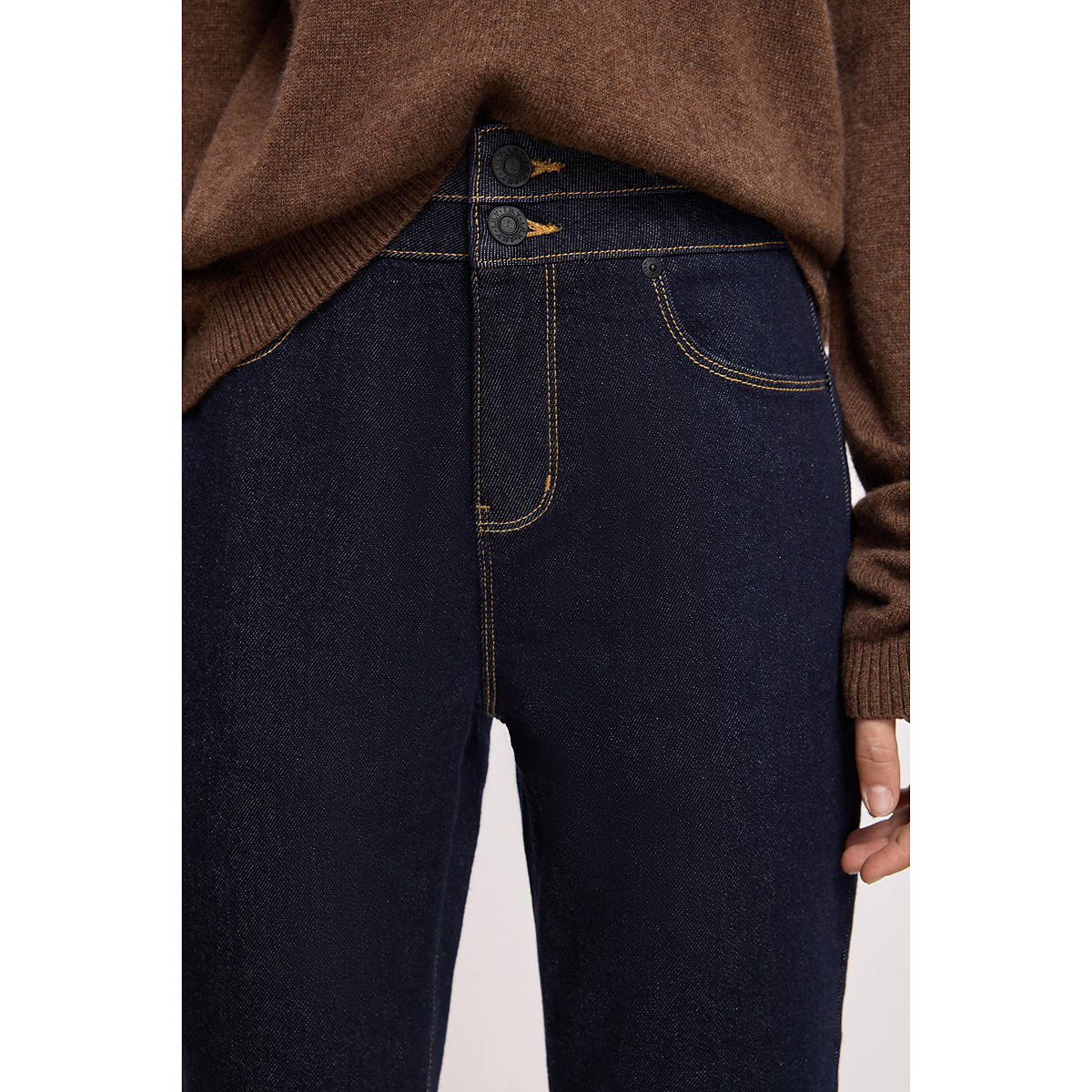 LILY2025冬新款复古原色抓毛修身窄版百搭通勤小脚直筒裤牛仔裤女