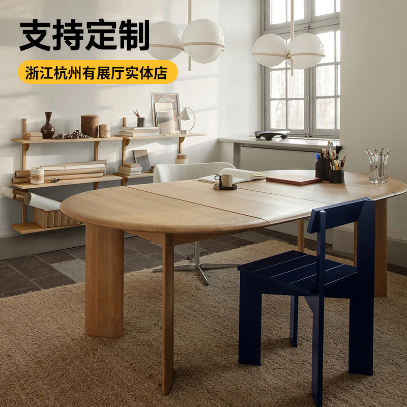 西多HOME现代简约实木圆桌北欧极简小户型伸缩折叠椭圆桌餐桌椅组