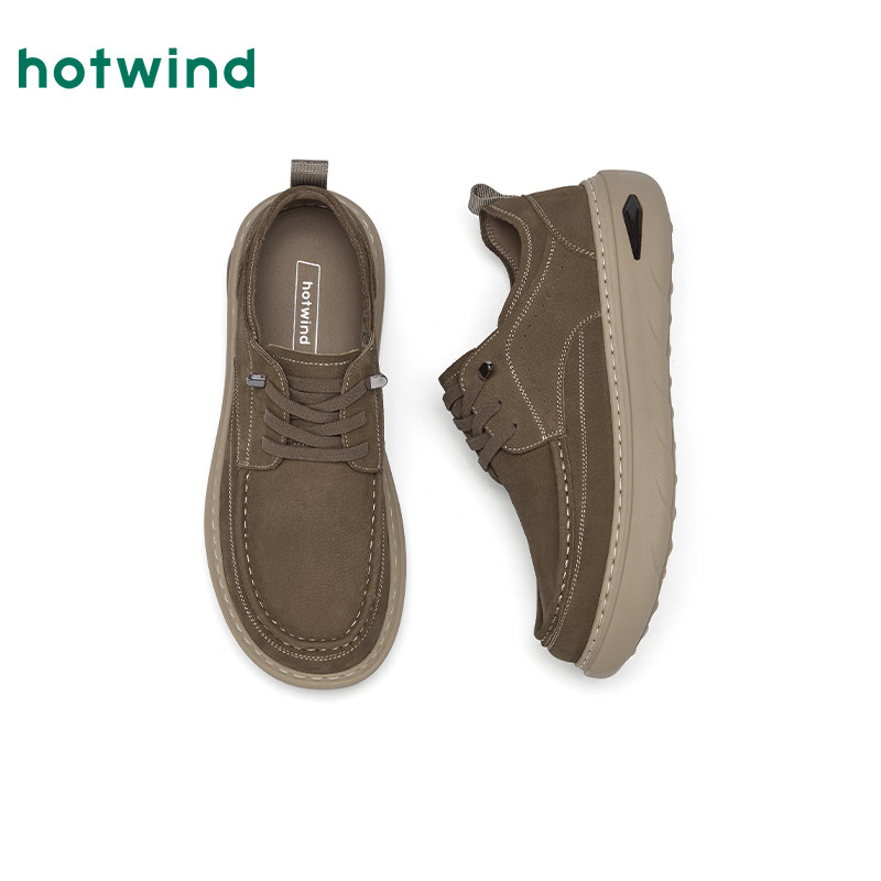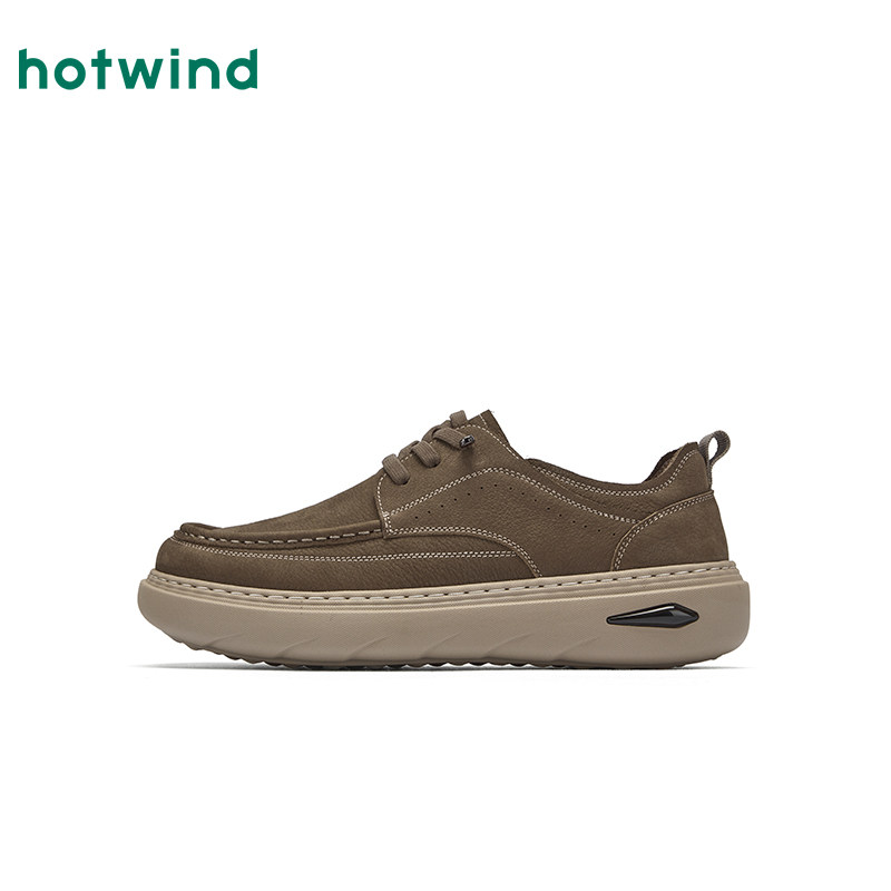 热风男鞋2025年秋季新款男士单鞋复古休闲皮鞋厚底鞋子H36M25301