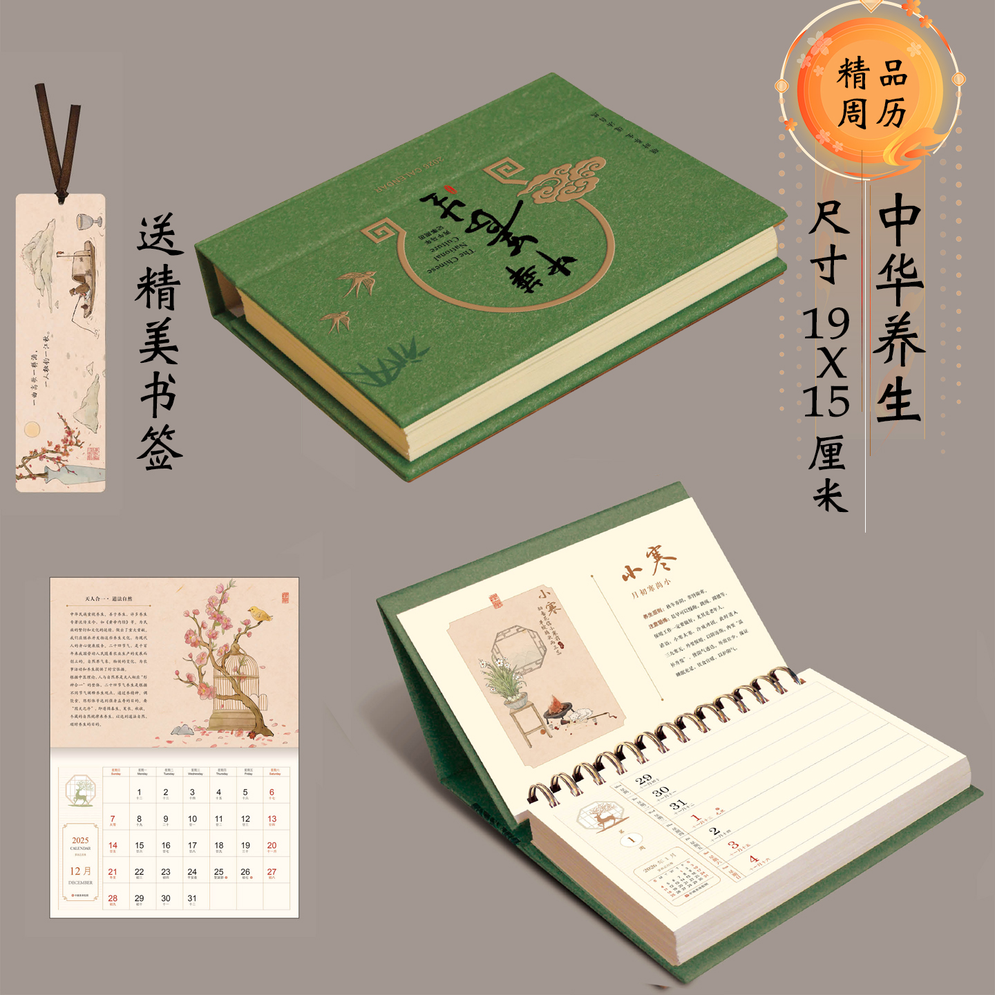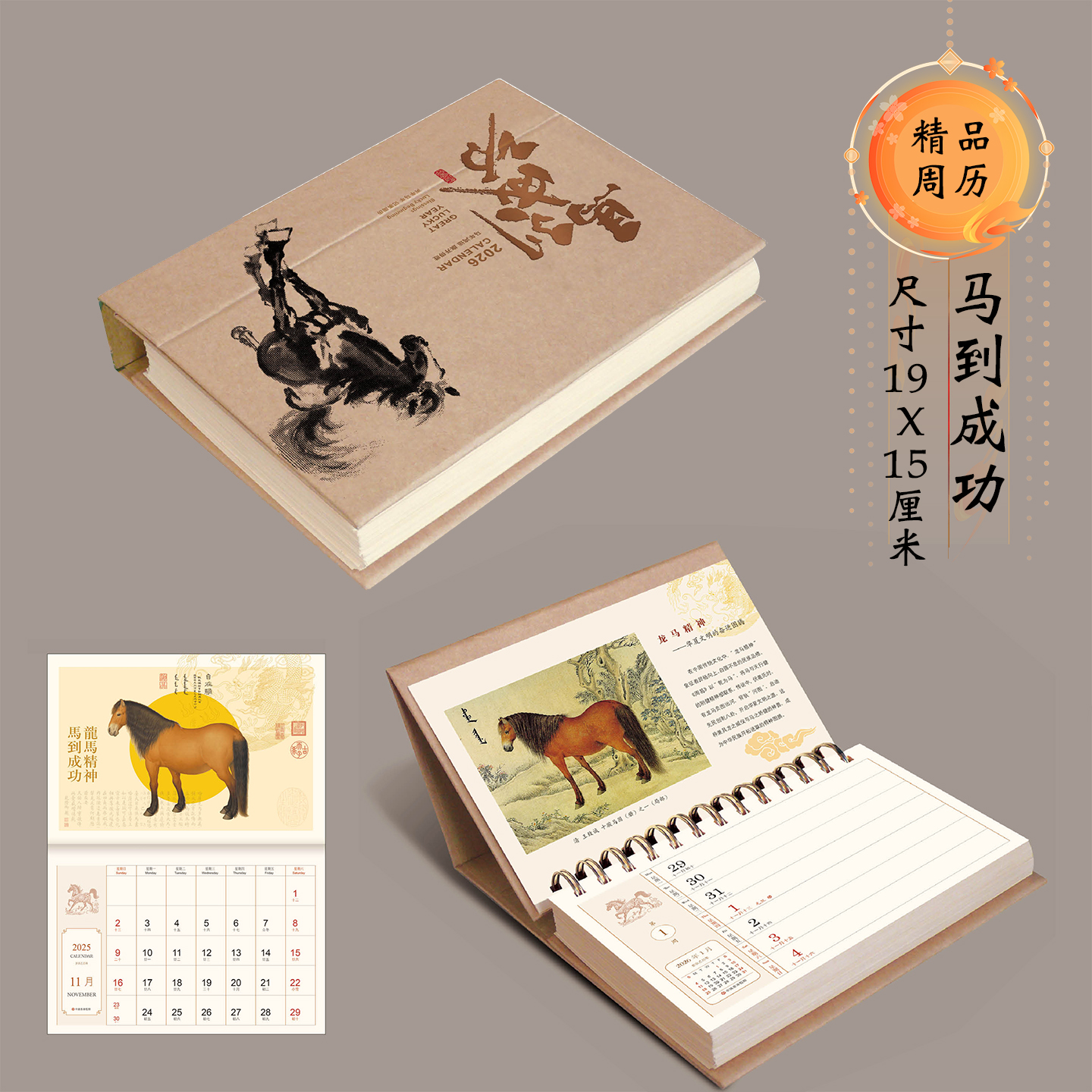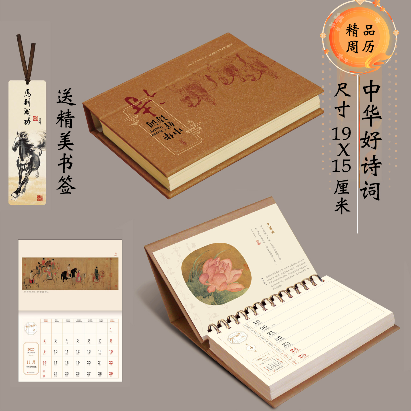 2026年新款日历加厚牛皮纸记事笔记本桌面小摆件家用台历办公中国风商务周历计划表日程本印刷广告定做定制