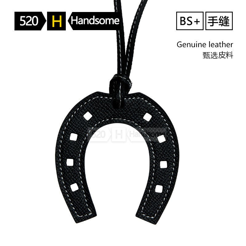 欧美轻奢经典马蹄挂件手工挂饰车内U型真皮荔枝纹包包挂饰钥匙扣