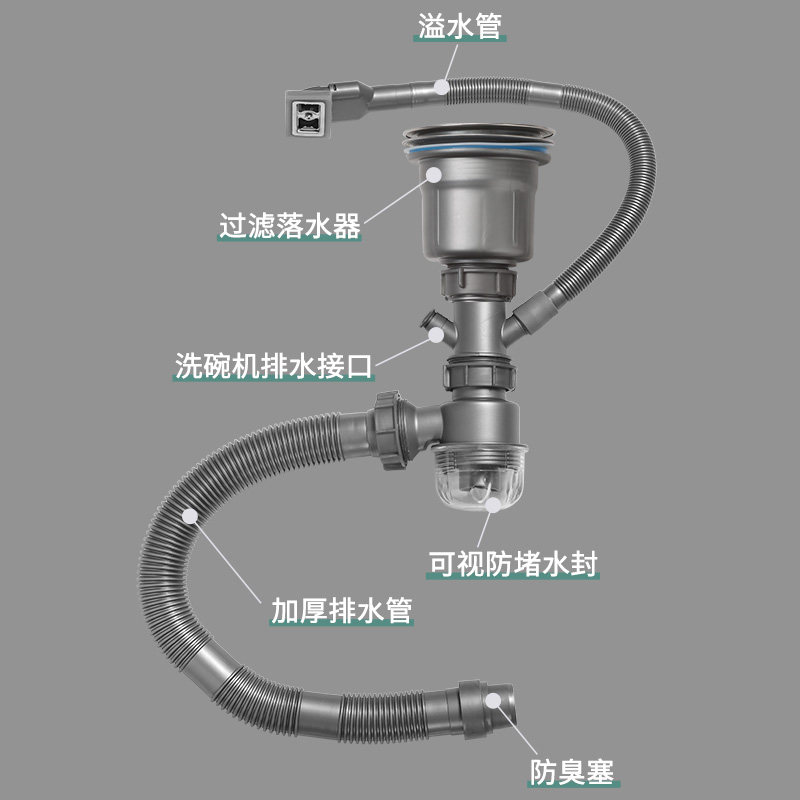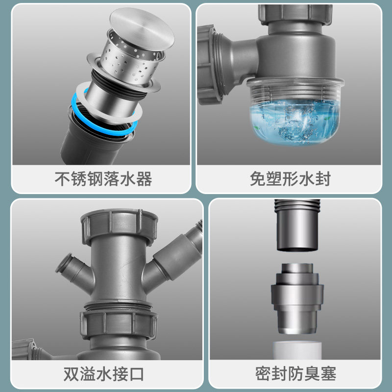 欧琳葫芦杯单槽单水盆PP50下水管水封防臭排水可接三通墙地排通用