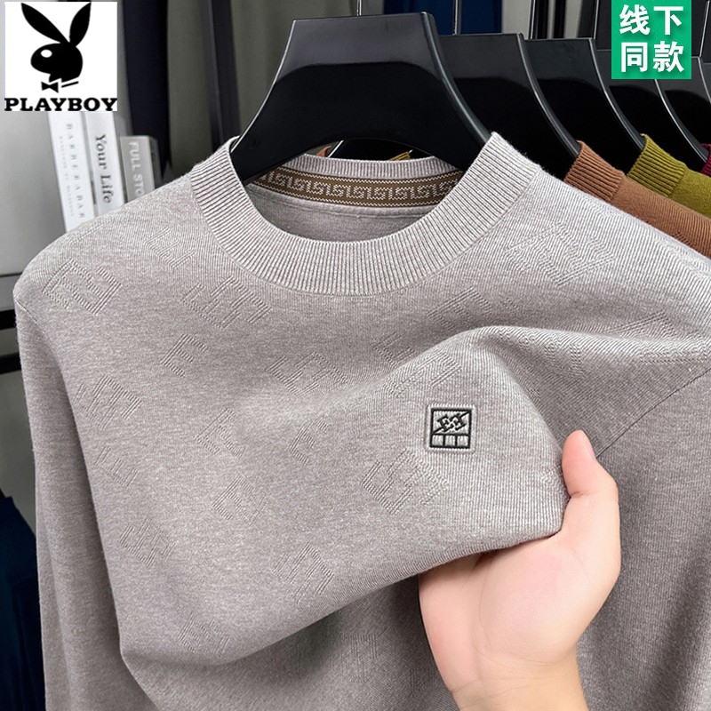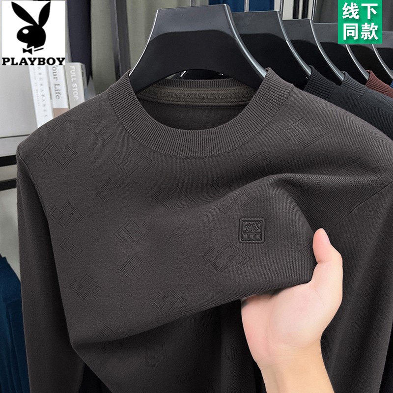 花花公子羊毛衫春秋款针织衫圆领薄款毛衣男长袖t恤线衣打底衫男