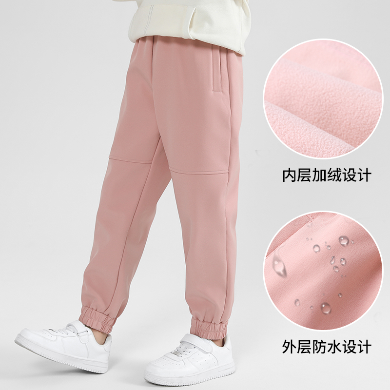 儿童冲锋裤户外软壳女童中大童防风防水三防加绒男童滑雪裤加绒冬