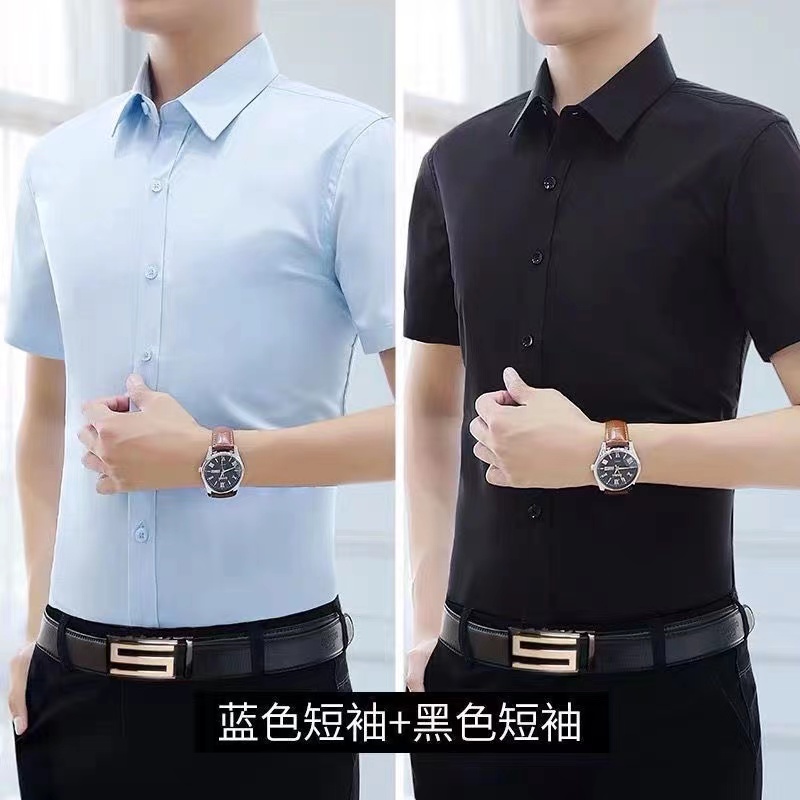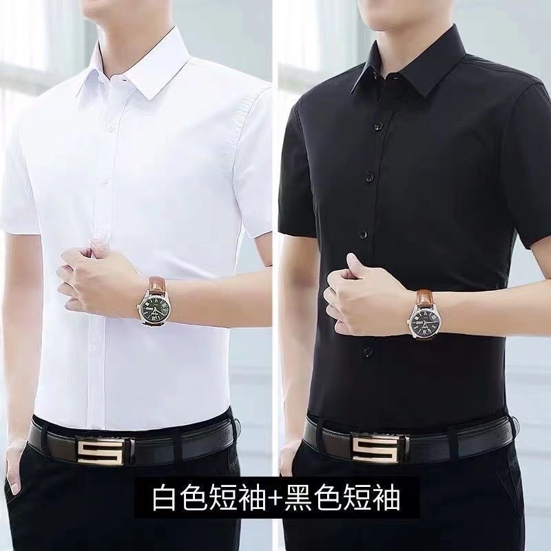 商务正装职业免烫纯色夏季薄款短袖衬衫男士宽松大码白色半袖衬衣