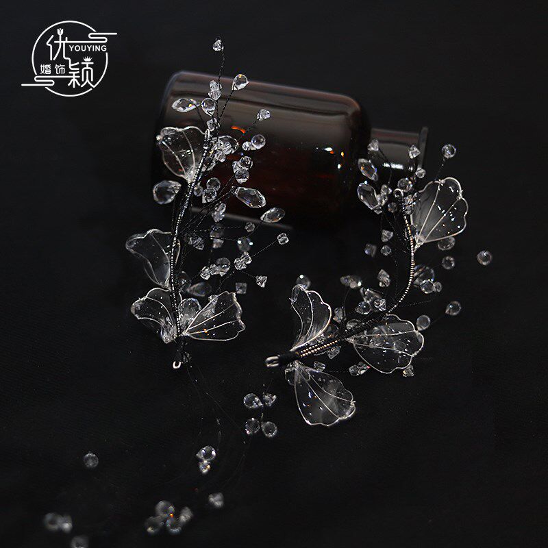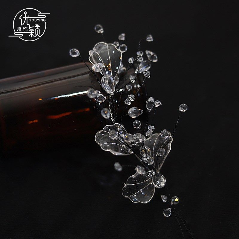 精致气质凝水滴胶花瓣水晶流苏灵气仙女写真新娘边夹礼服白纱头饰