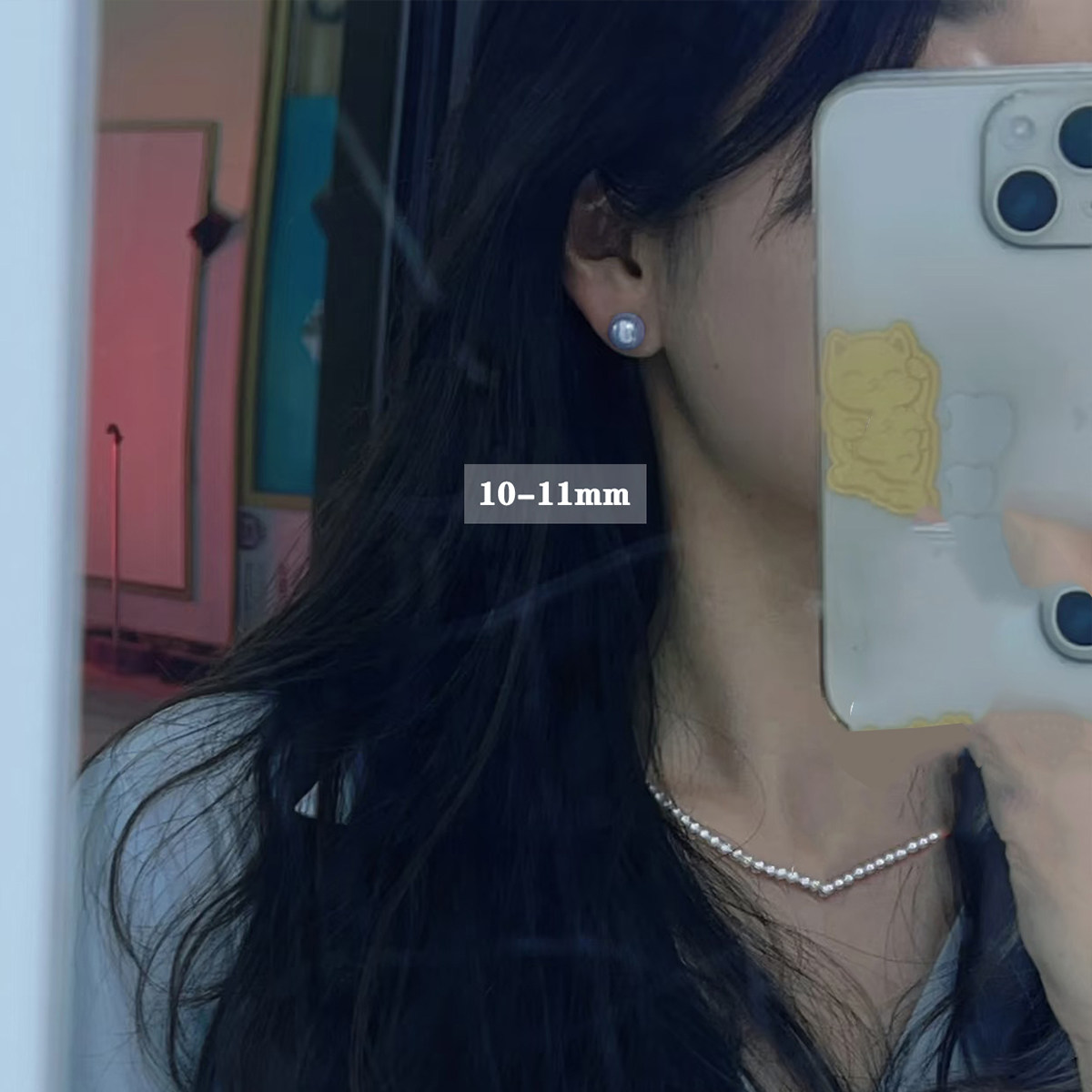 5-6-7-8-9-10-11mm粉紫色灰蓝光天然馒头淡水珍珠S925纯银耳钉女