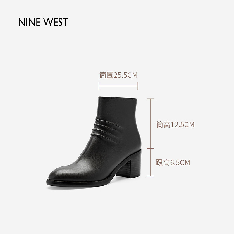 Nine West/玖熙加绒粗跟短靴女棉鞋冬季粗跟韩系显瘦时装靴