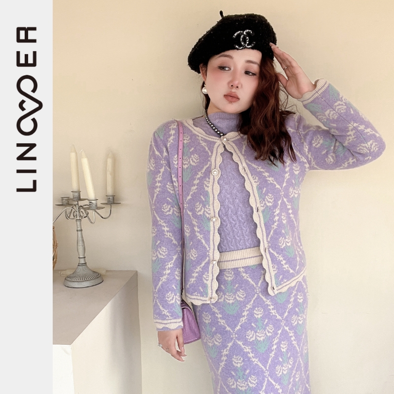 羚荌渼轻奢羊绒开衫包臀裙套装