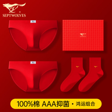 七匹狼大红色内裤男士三角裤纯棉本命年结婚2026属马年男生短裤头