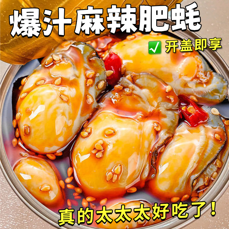 爆汁蒜蓉鲜蚝罐头即食海鲜捞汁网红小吃下酒菜罐装熟食麻辣生蚝肉