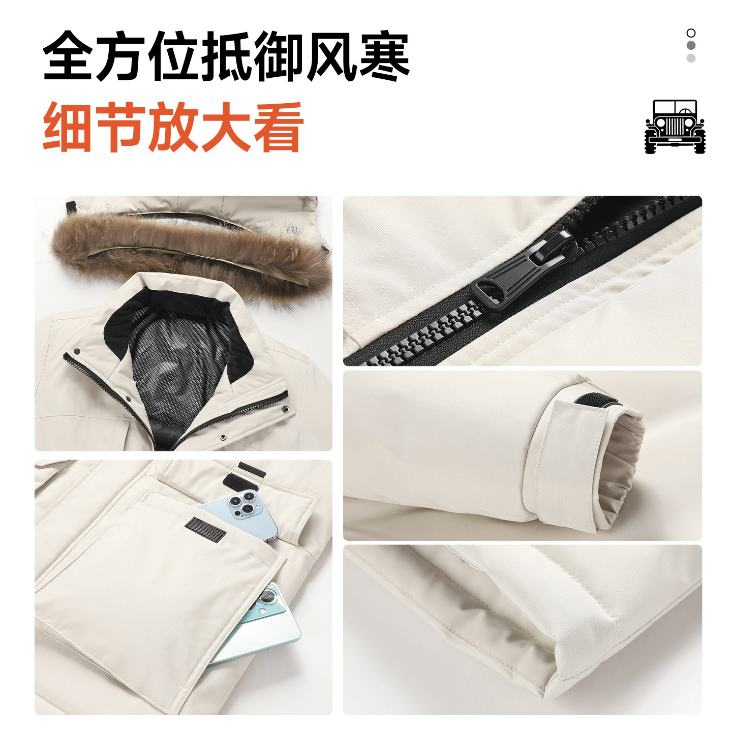 JEEP吉普户外防风羽绒服男冬情侣加厚保暖中长款毛领派克服外套女