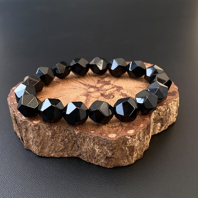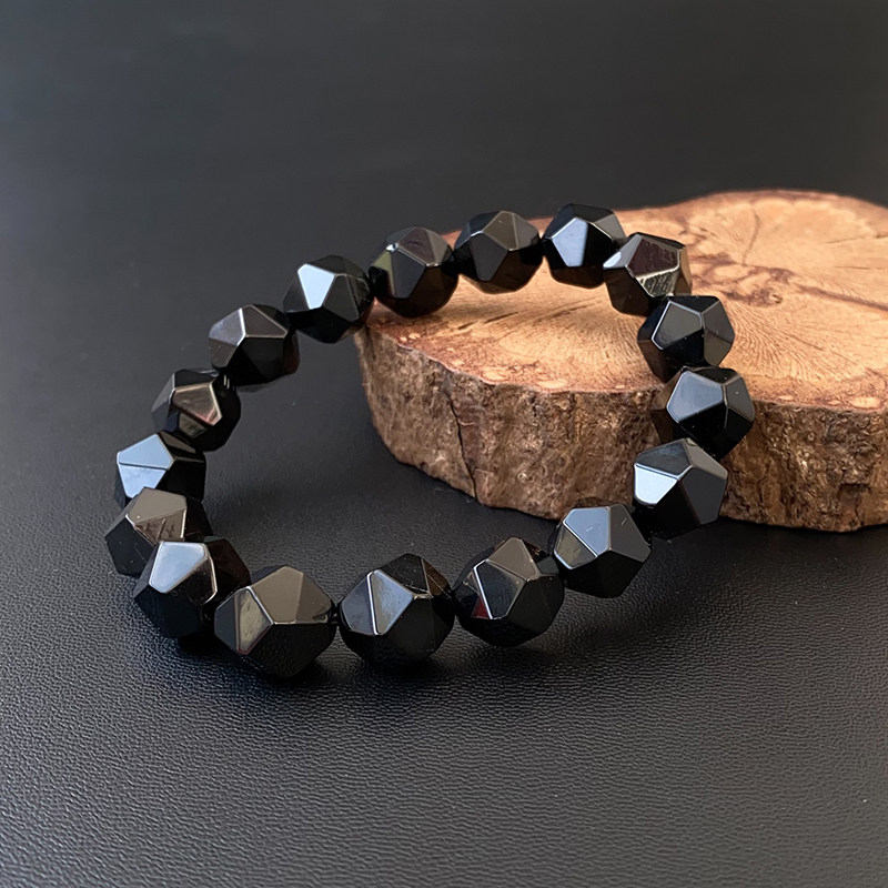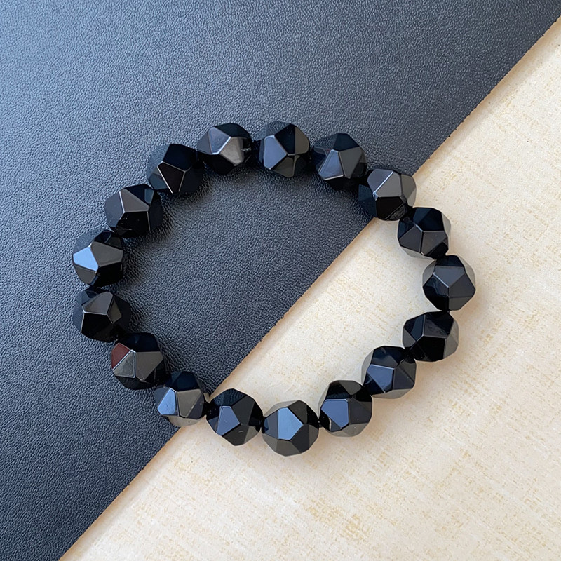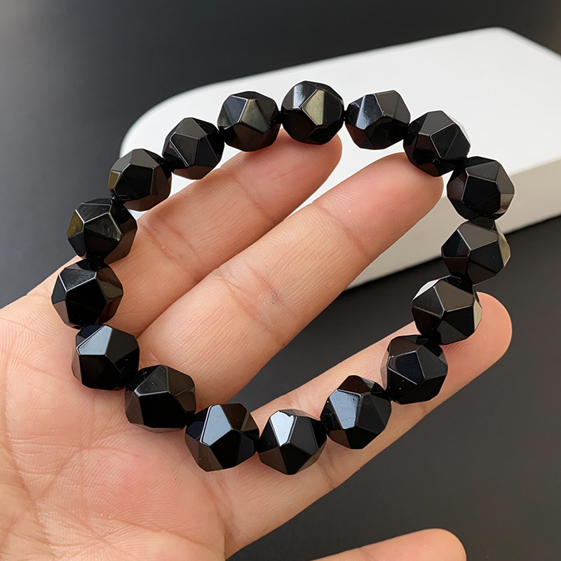 切面黑玛瑙手串简约情侣钻石面天然玛瑙手链男士女款转运水晶饰品