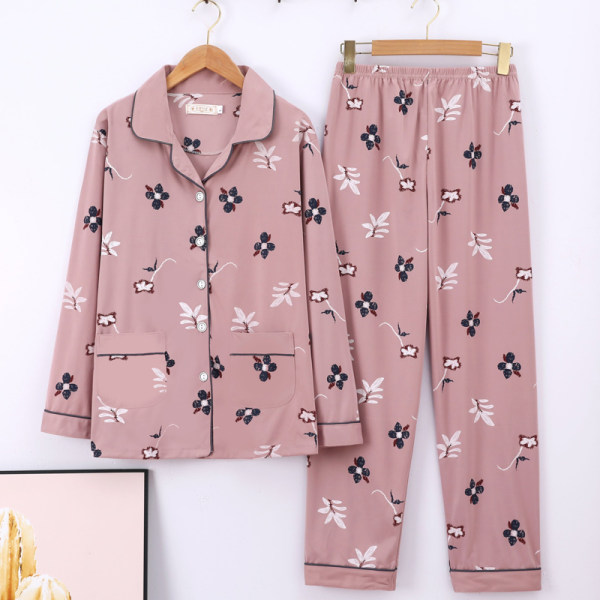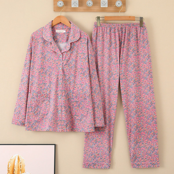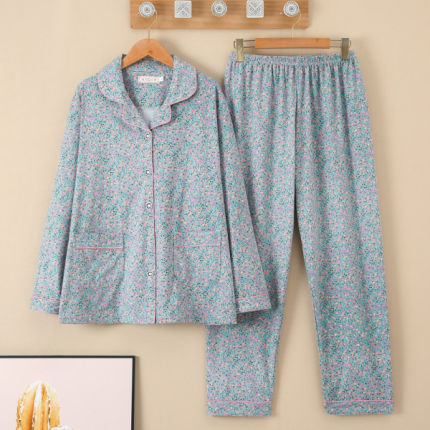 长袖春秋季睡衣女老年人全棉厚新款开衫睡裤大码休闲家居服装纯棉