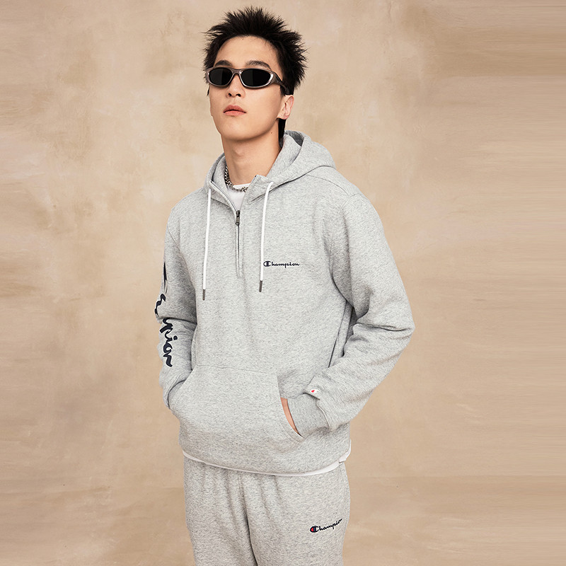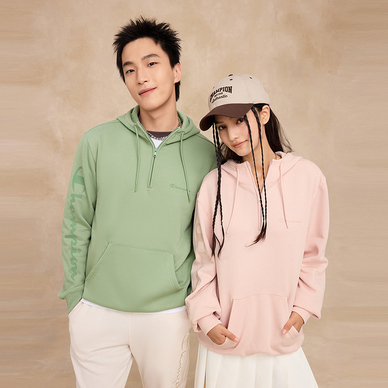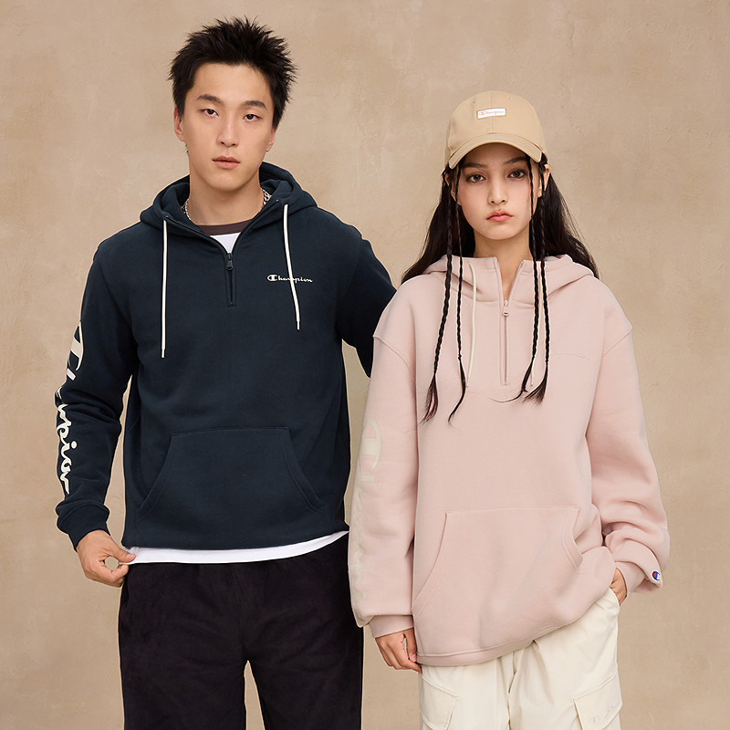Champion冠军卫衣女2025冬季新款情侣休闲加绒半拉链连帽上衣男