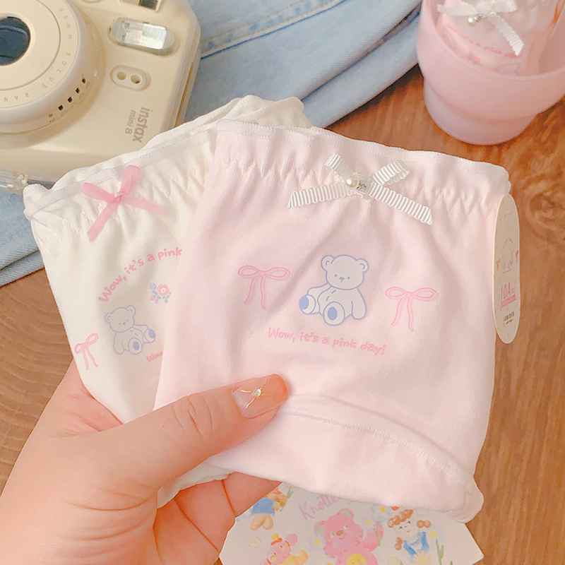 「月熊软糖」可爱内裤女生纯棉加长裆18cm10A抗菌甜美三角裤少女