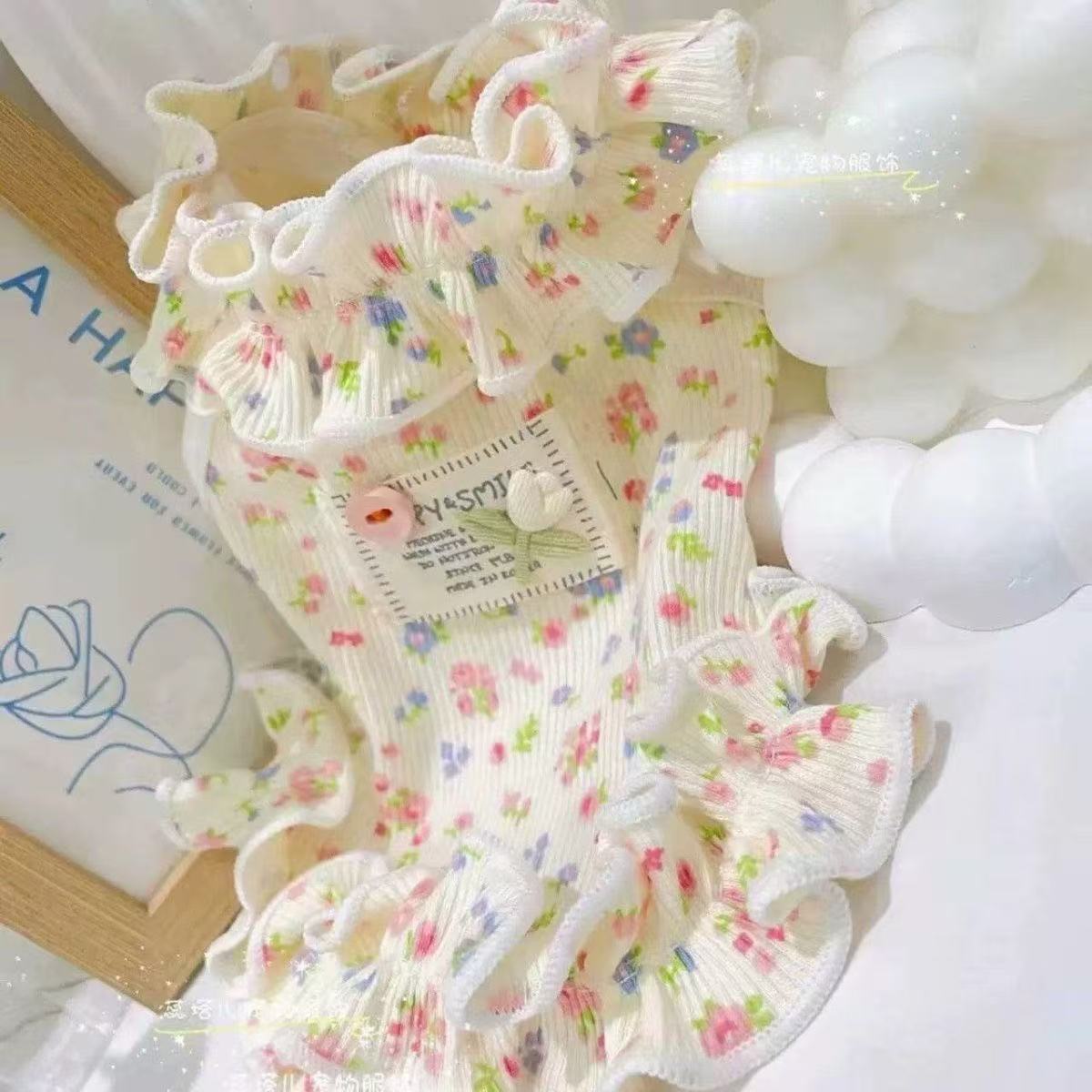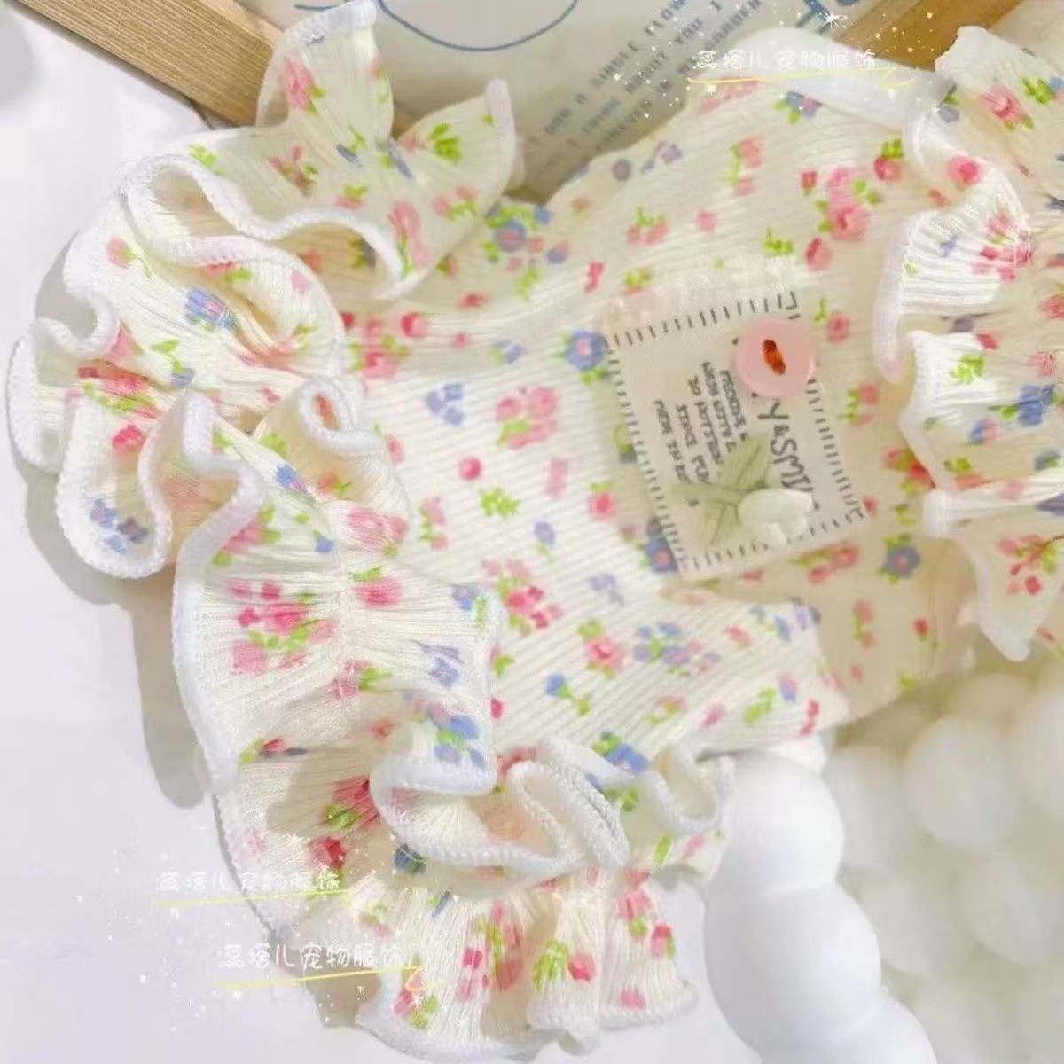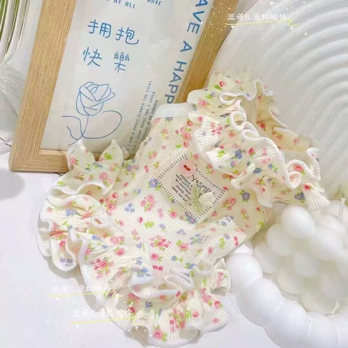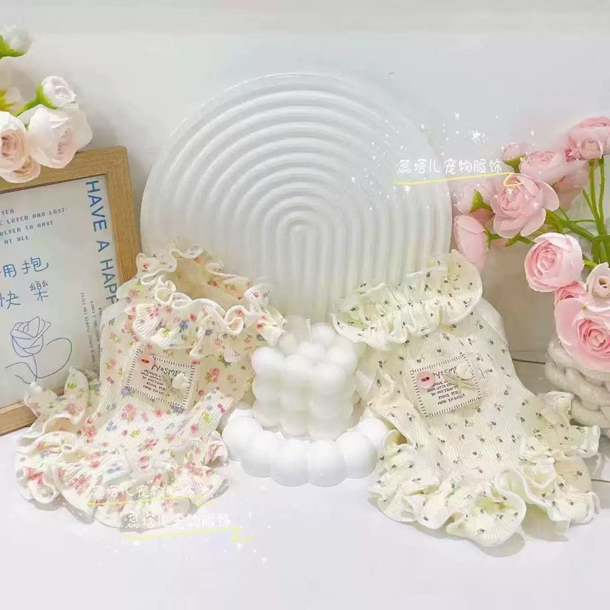 宠物服饰泰迪碎花春夏马尔济斯约克夏比熊小狗狗冰丝木耳边连衣裙