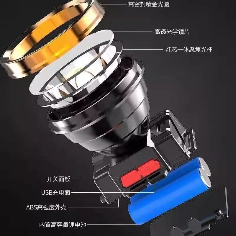 公牛适用LED超亮强光头灯远射长续航防水头戴式钓鱼灯矿灯手电筒