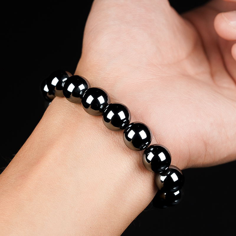 天铁黑钻陨石手串黑陨石原石圆珠子宇宙高频磁性保真正品陨石手链