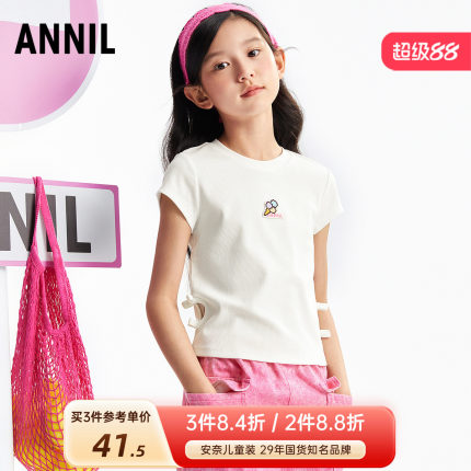 安奈儿童女童圆领短袖针织衫