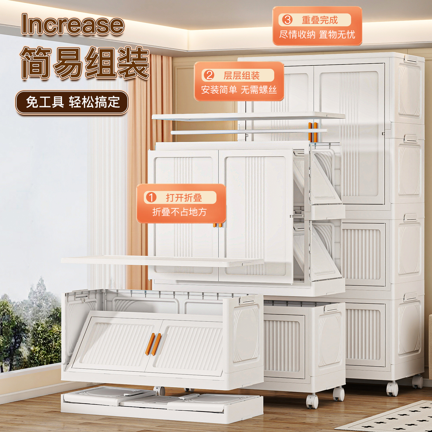 80/90宽简易衣柜儿童收纳柜宝宝小衣橱免安装随意搭配组合折叠柜