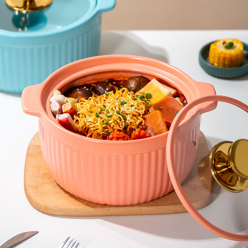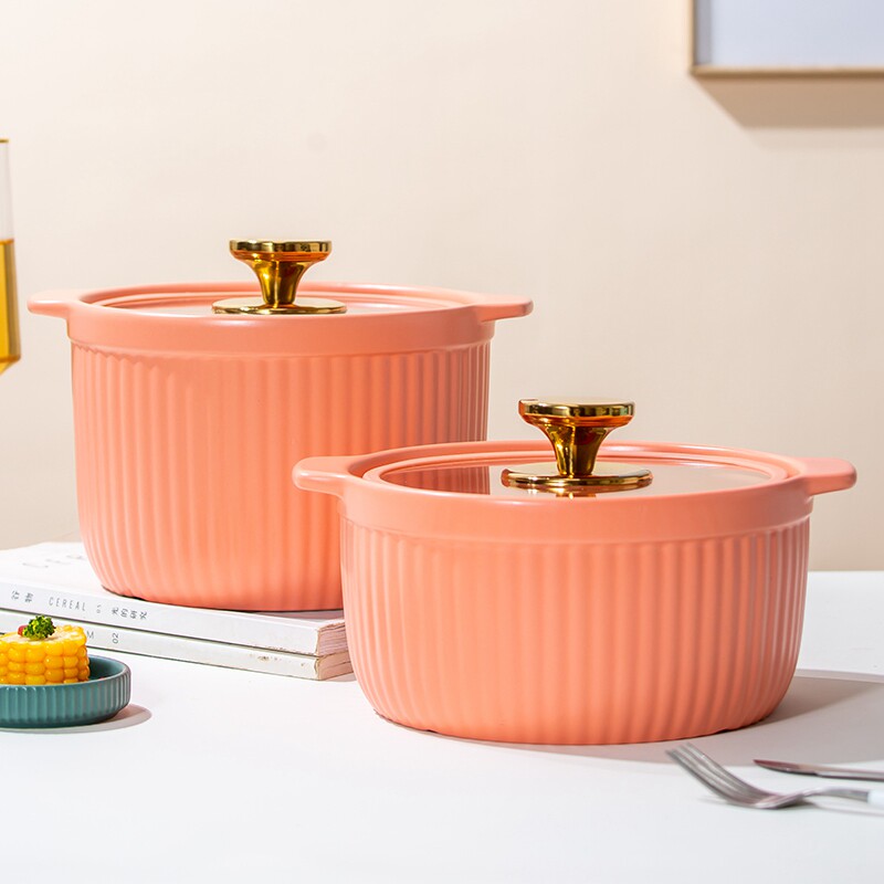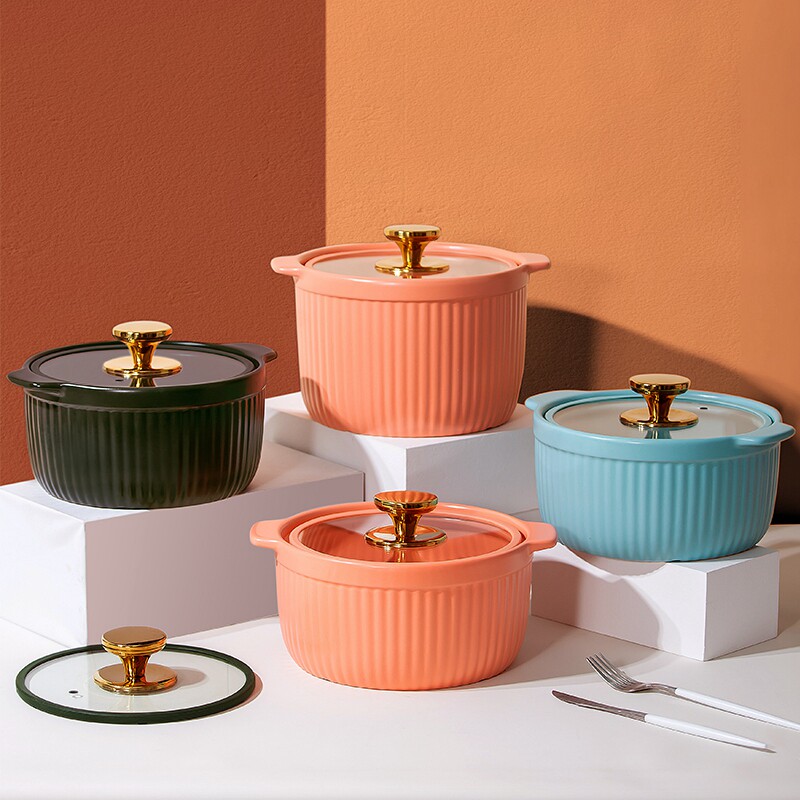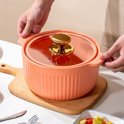 北欧风格玻璃盖耐高温砂锅