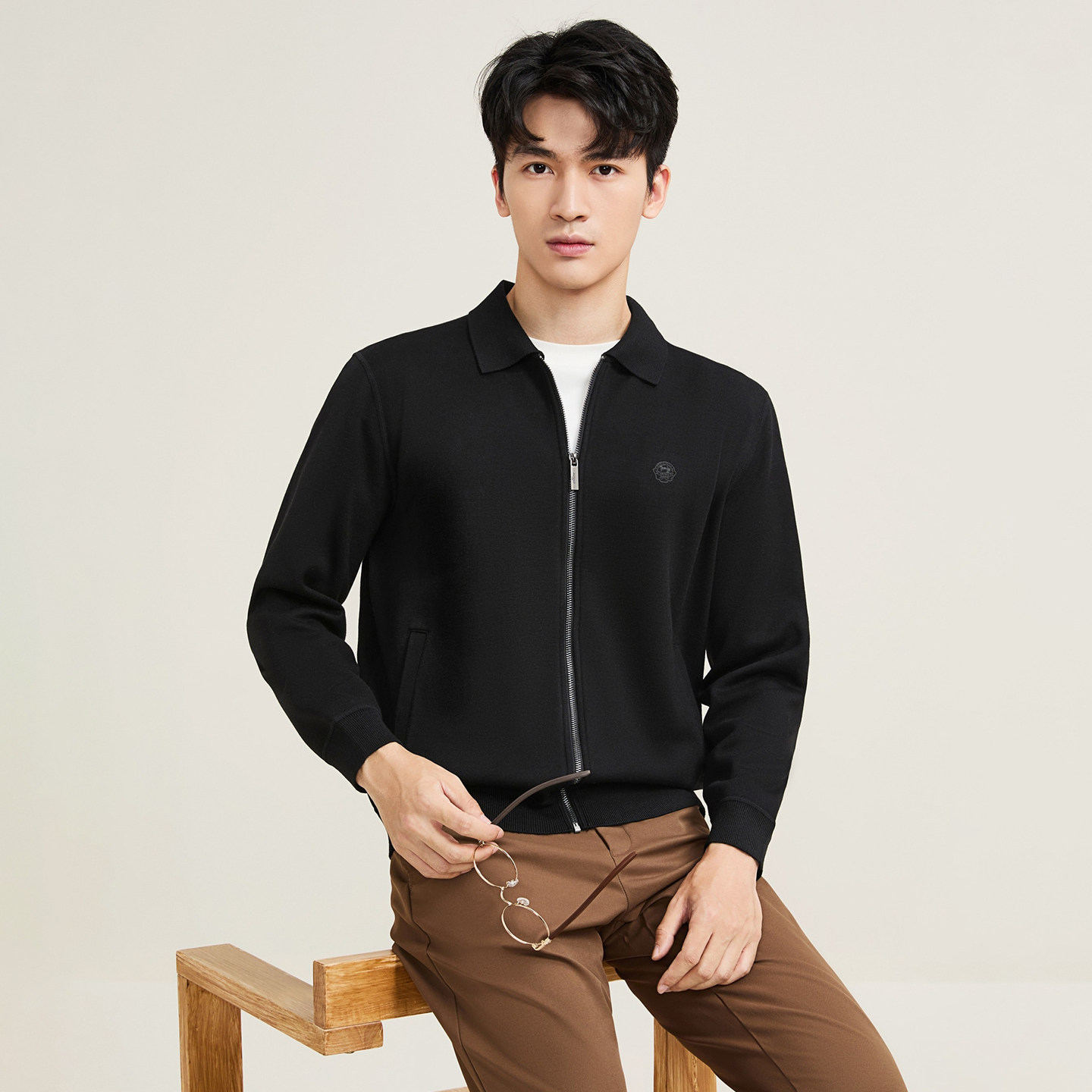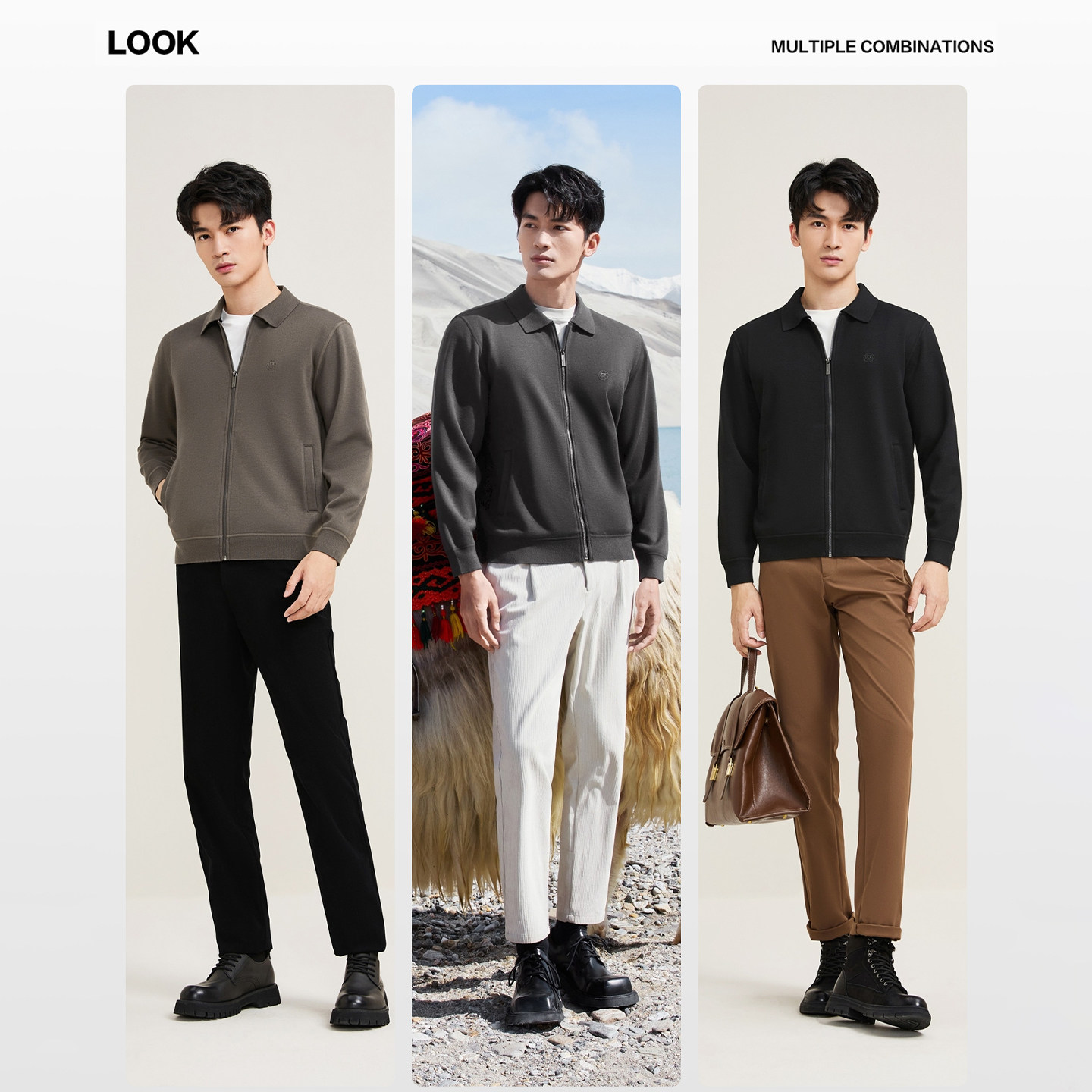 【加绒开衫毛衣】柒牌男士翻领针织衫2025秋冬休闲拉链保暖厚外套