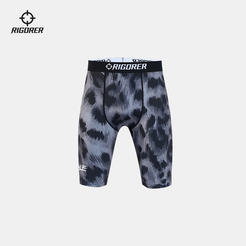 准者豹纹五分紧身裤2025夏季新款健身美式篮球打底裤男跑步压缩裤