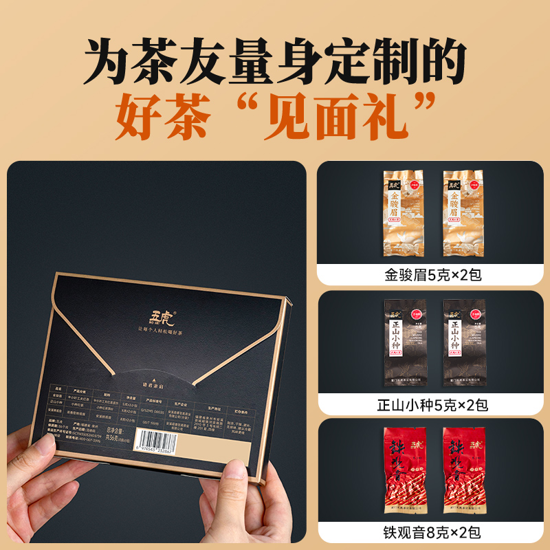 五虎正山小种金骏眉红茶铁观音乌龙茶秋茶品鉴茶叶特级浓香盒装