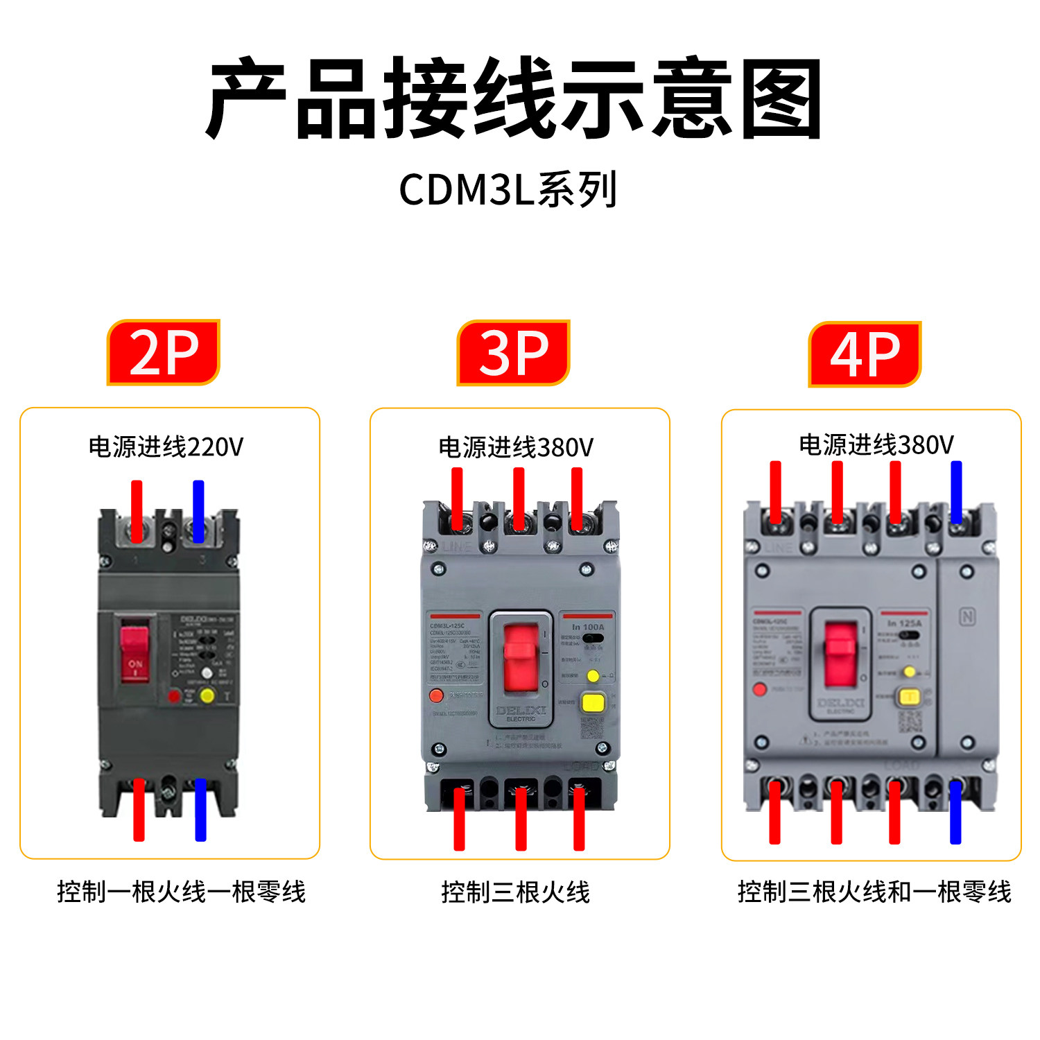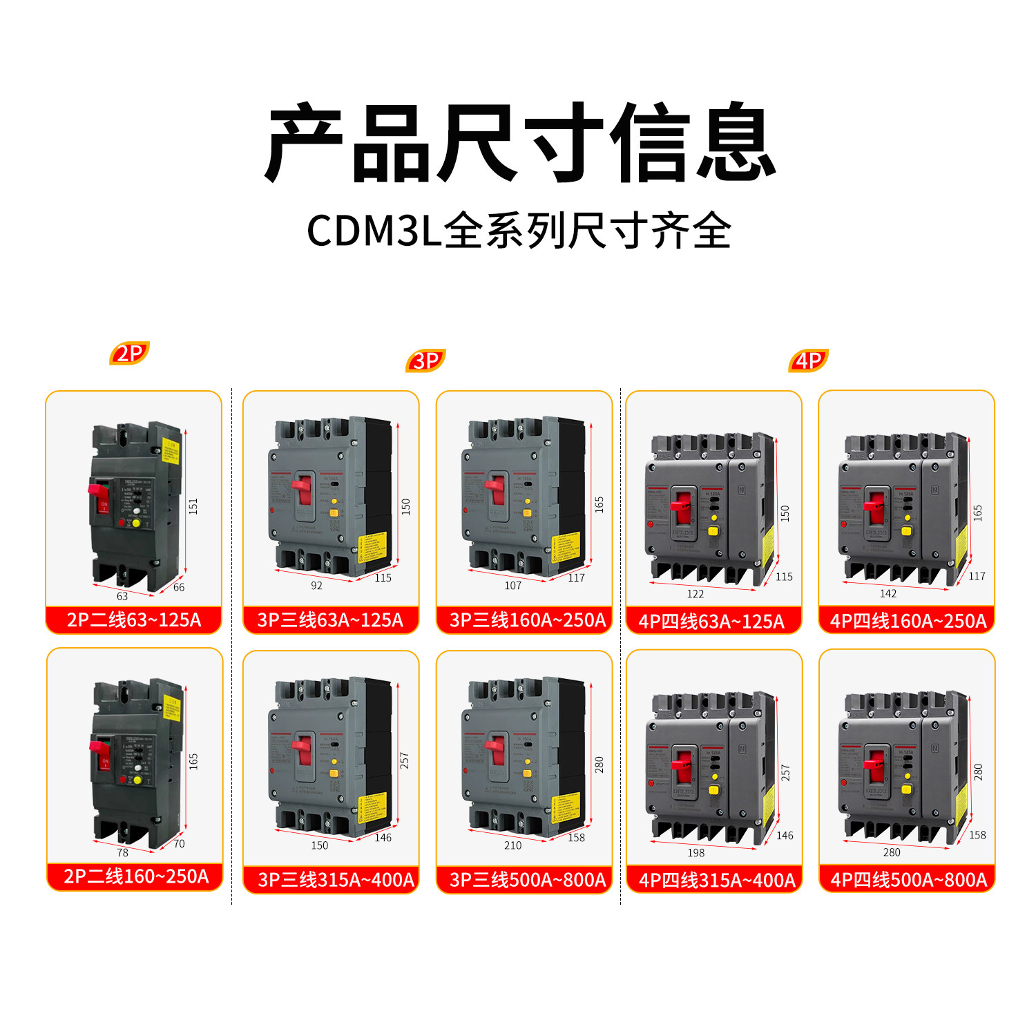 德力西CDM3L塑壳断路器漏电保护器3P4P100A160A200A250A400A空开