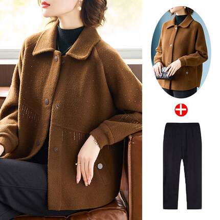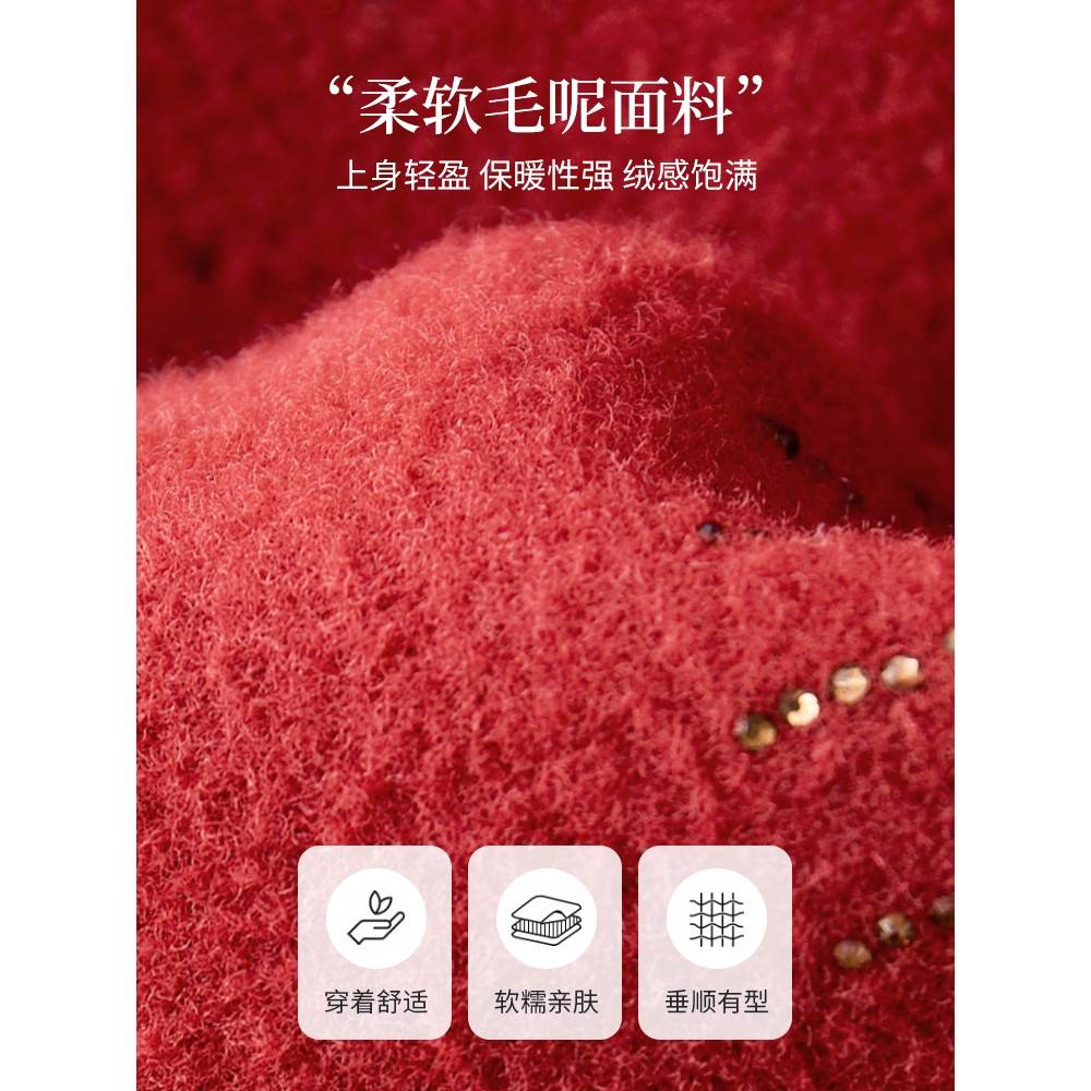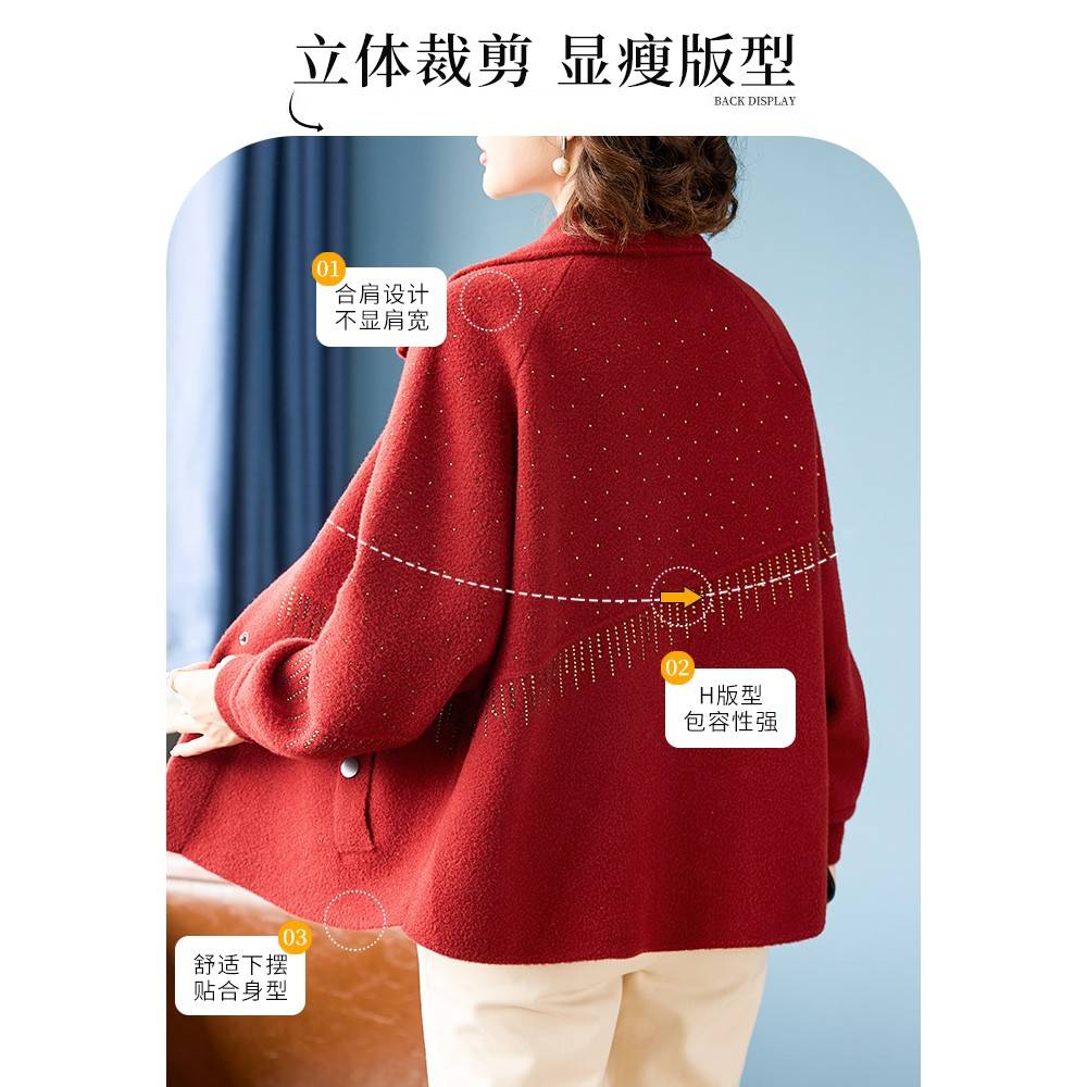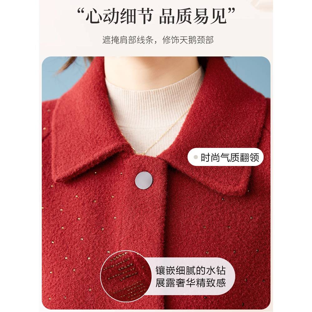 本命年妈妈秋装红色毛呢外套2025新款中老年女士高贵短款羊绒大衣