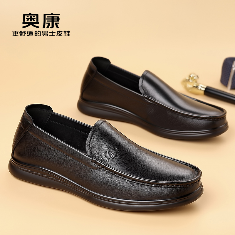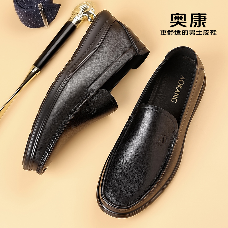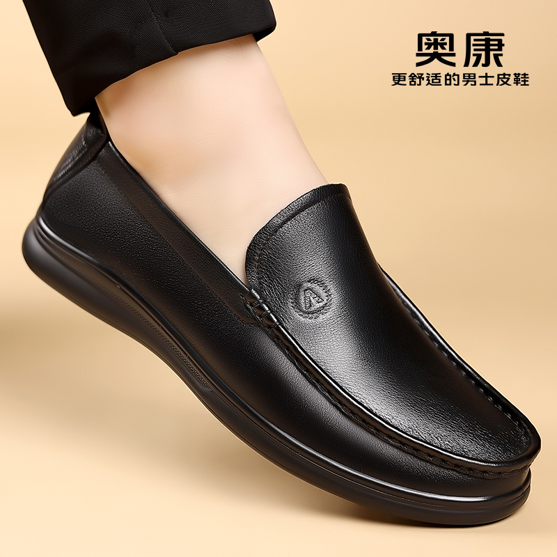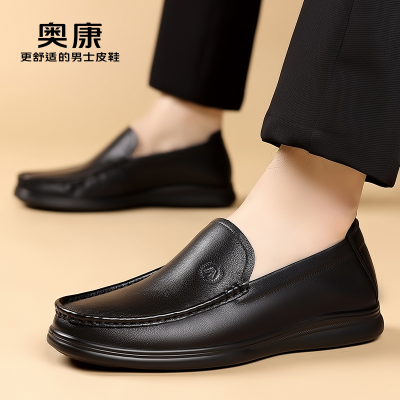 Aokang/奥康男鞋2025新款商务休闲皮鞋男士高端软底一脚蹬懒人鞋