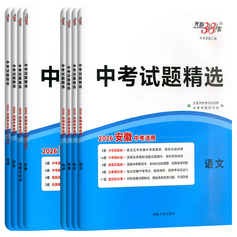 2026适用任选天利38套安徽省中考试题精选语文数学英语物理化学道德与法治历史初中初三题真优质模拟真题改编卷专项信息预测必刷题