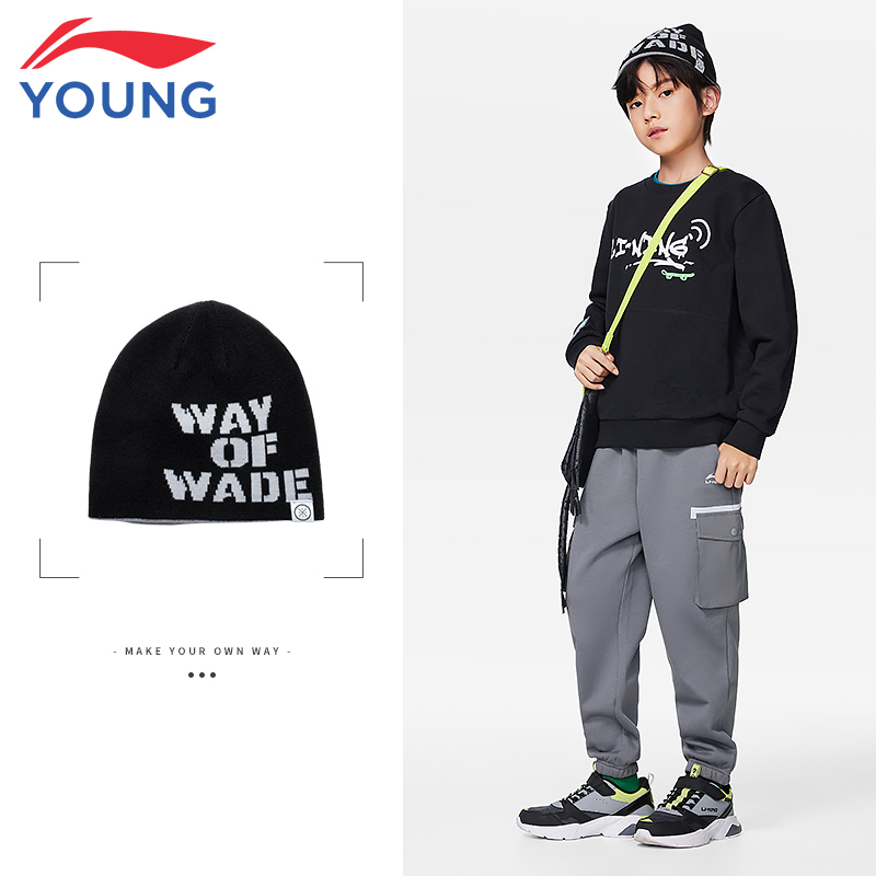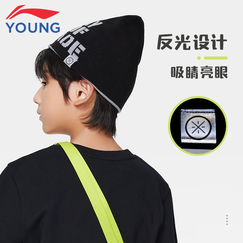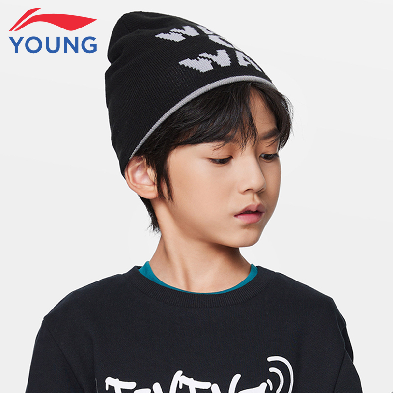 李宁儿童帽子男大童秋冬新款运动休闲弹力保暖双面针织毛线帽子潮