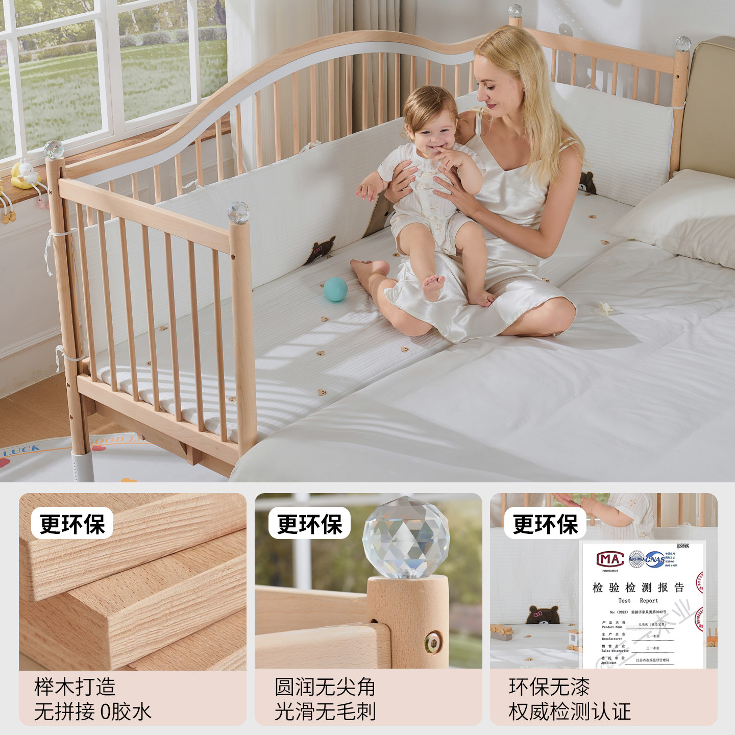 爱贝岛拼接床婴儿升降护栏加宽床边大床拼接小床定制实木宝宝儿童