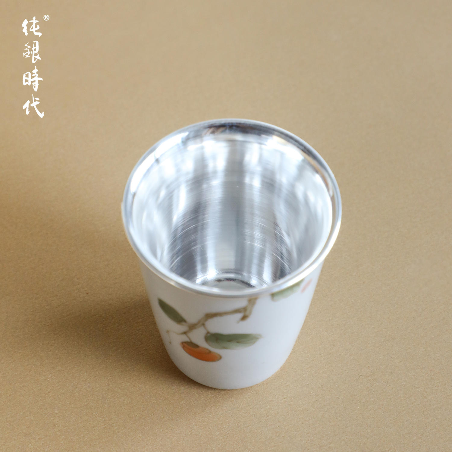 纯银时代手绘瓷包银足银中式茶杯