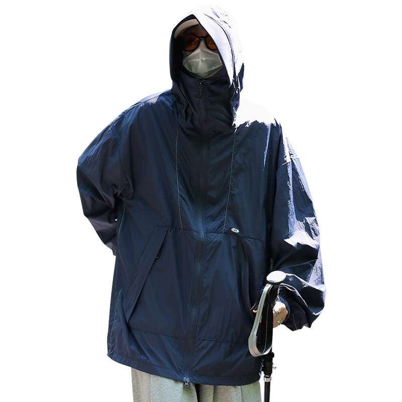户外连帽防晒衣男款夏季美式复古宽松潮牌冰丝透气薄款防晒服外套