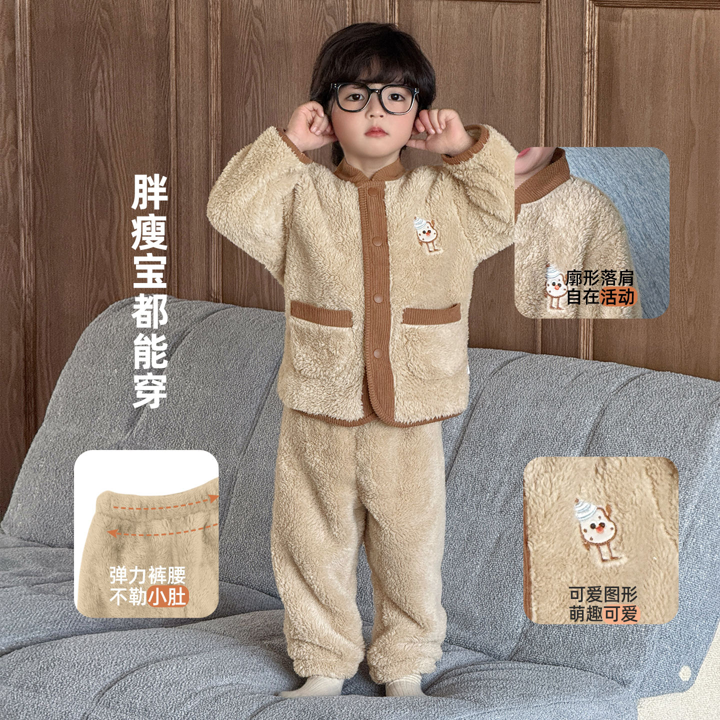 男童珊瑚绒睡衣秋冬儿童冬季家居服2025新款男孩a类加厚长袖居家