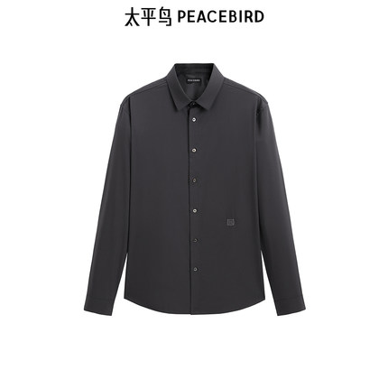太平鸟男装 灰色长袖衬衫男修身刺绣商务休闲磨毛打底衬衣男