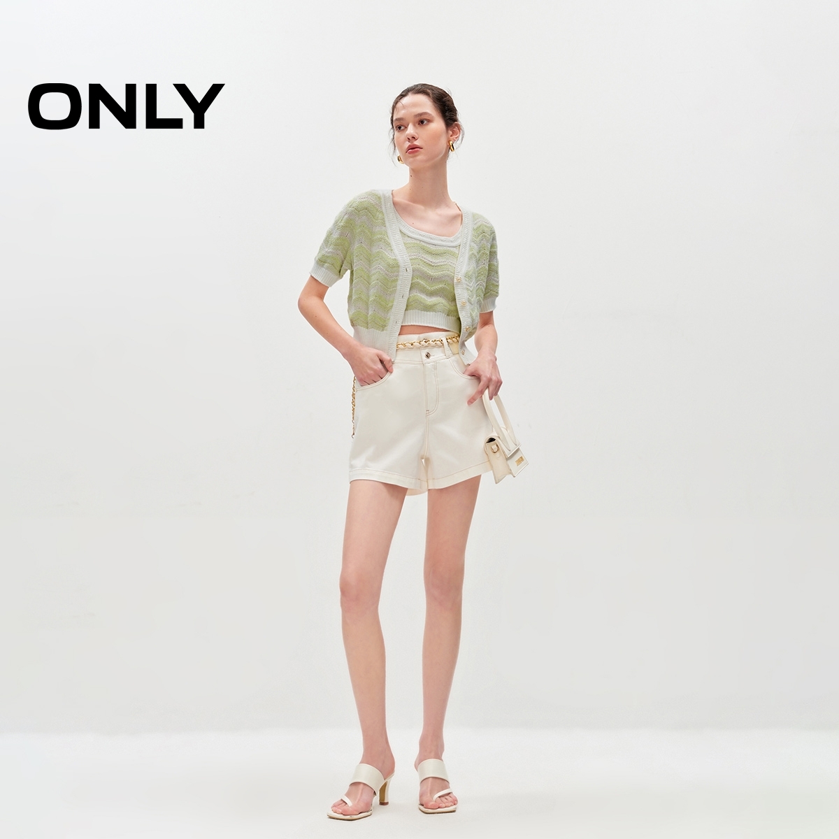 【ONLY奥莱清仓】秋季甜美条纹V领套装短款短袖针织衫女