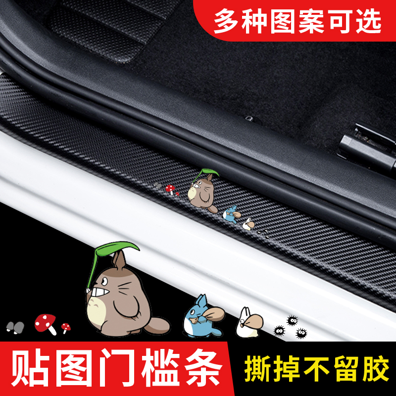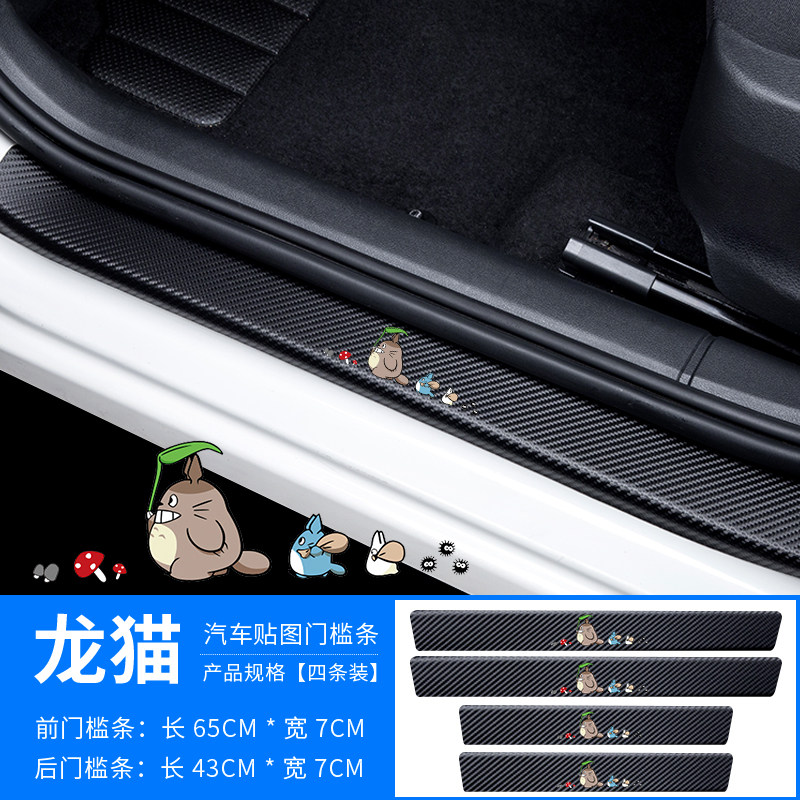 汽车门槛条龙猫卡通可爱个性车贴碳纤纹迎宾踏板防踩保护贴片防刮