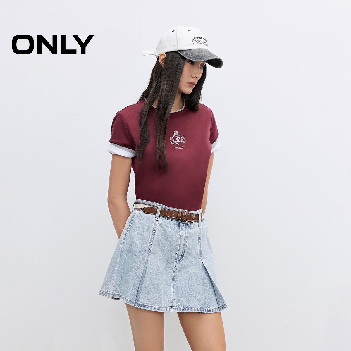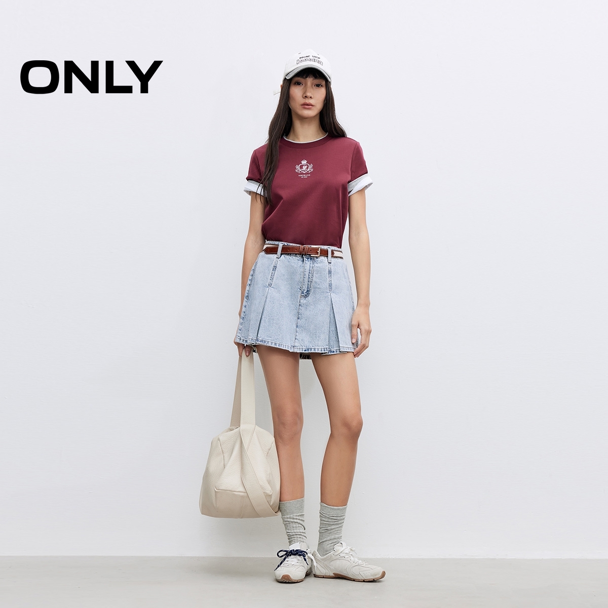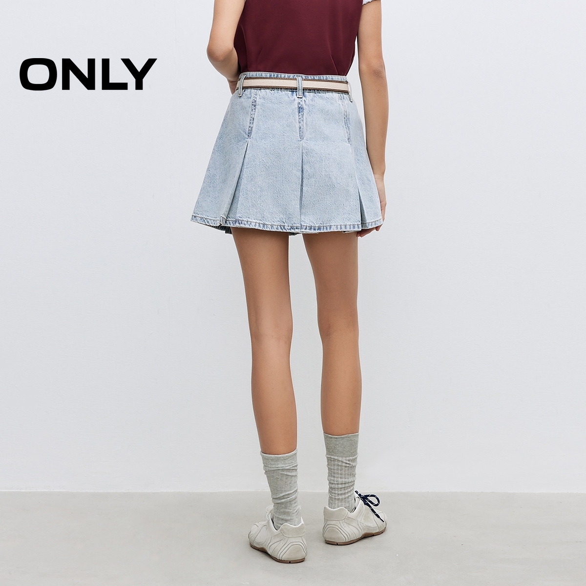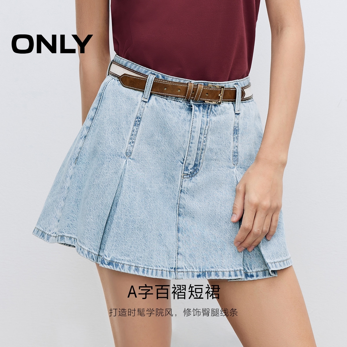 ONLY2025夏季新款学院风设计A字显瘦版型百褶裙牛仔短裙半身裙女