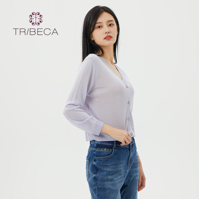 TRIBECA翠贝卡夏季商场同款薄款防晒长袖开衫毛针织衫针织女毛衣