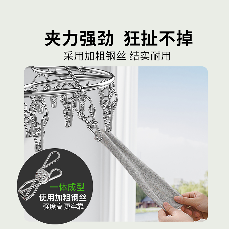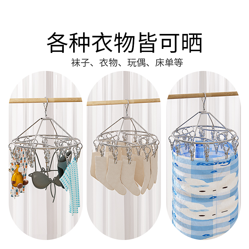 304不锈钢圆形多夹子晾衣架袜子凉晾晒衣夹神器阳台防风扣多功能