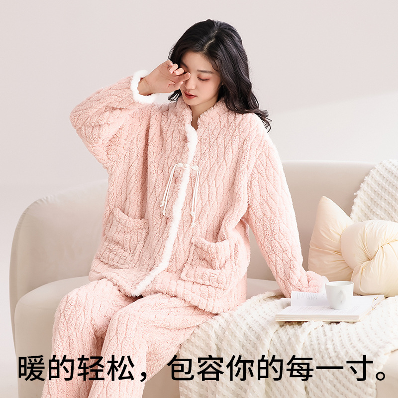 【双面芒果提花绒】秋冬季新款睡衣女珊瑚绒加厚棉衣保暖家居服