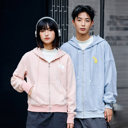 PSO Brand男装女装340克仿麂皮绒可爱动物拉链开衫连帽卫衣外套