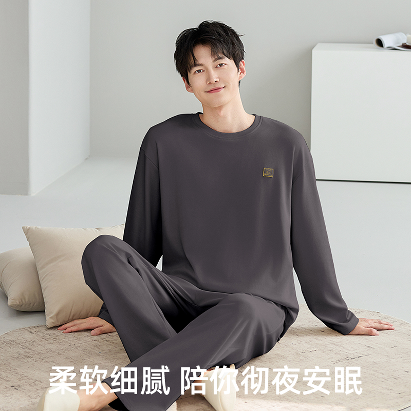 七色纺男士睡衣100%全棉长袖长裤纯棉套装春秋款男生家居服可外穿