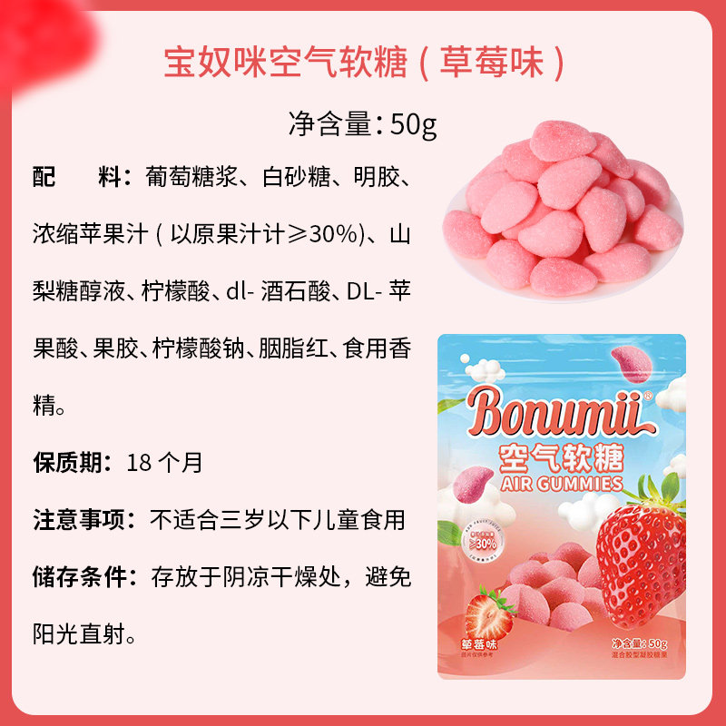 空气感宝奴咪果汁空气软糖棉花糖软糖酸味空气糖果汁酸砂软糖袋装
