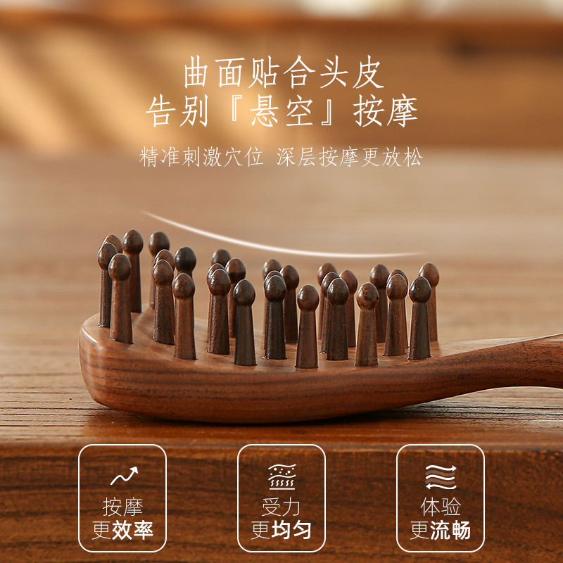 素娘檀木头皮按摩梳头部经络梳拨筋养生防静电女士家用宽齿木梳
